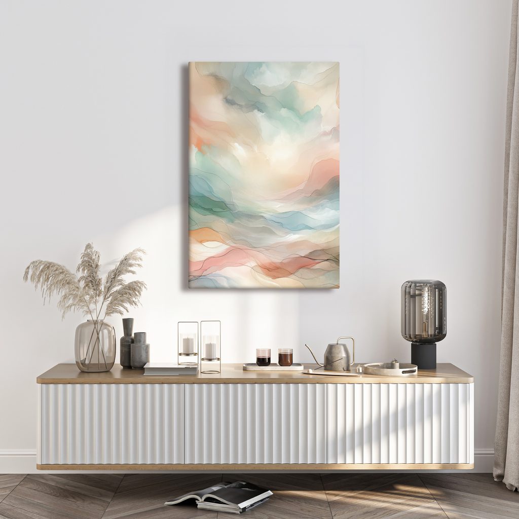 Obraz jemné pastelové vlny zachycuje harmonické spojení barev a tvarů. Vlnící se linie v odstínech modré, růžové a béžové vytvářejí uklidňující atmosféru, která osvěží každý interiér. Pastelové barvy dodávají obrazu lehkost a vzdušnost, ideální pro relaxační prostory. Tento obraz se skvěle hodí do obývacího pokoje nebo ložnice, kde přinese pocit klidu. Kvalitní tisk na plátno zajistí dlouhou životnost a jedinečný vzhled, který oceníte každý den.