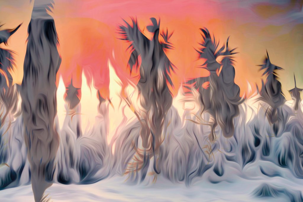 Objevte kouzlo tajemného lesa s touto abstraktní tapetou. Motiv zobrazuje surrealistické stromy v jemných, rozmazaných konturách, které vytvářejí mystickou atmosféru. Barvy se pohybují od teplých odstínů růžové a oranžové po chladné tóny modré a šedé, což dodává prostoru hloubku a dynamiku. Ideální pro vytvoření jedinečné atmosféry v obývacím pokoji, ložnici nebo pracovně. Naše tapety jsou vyrobeny z kvalitních materiálů, které zaručují dlouhou životnost a snadnou aplikaci.