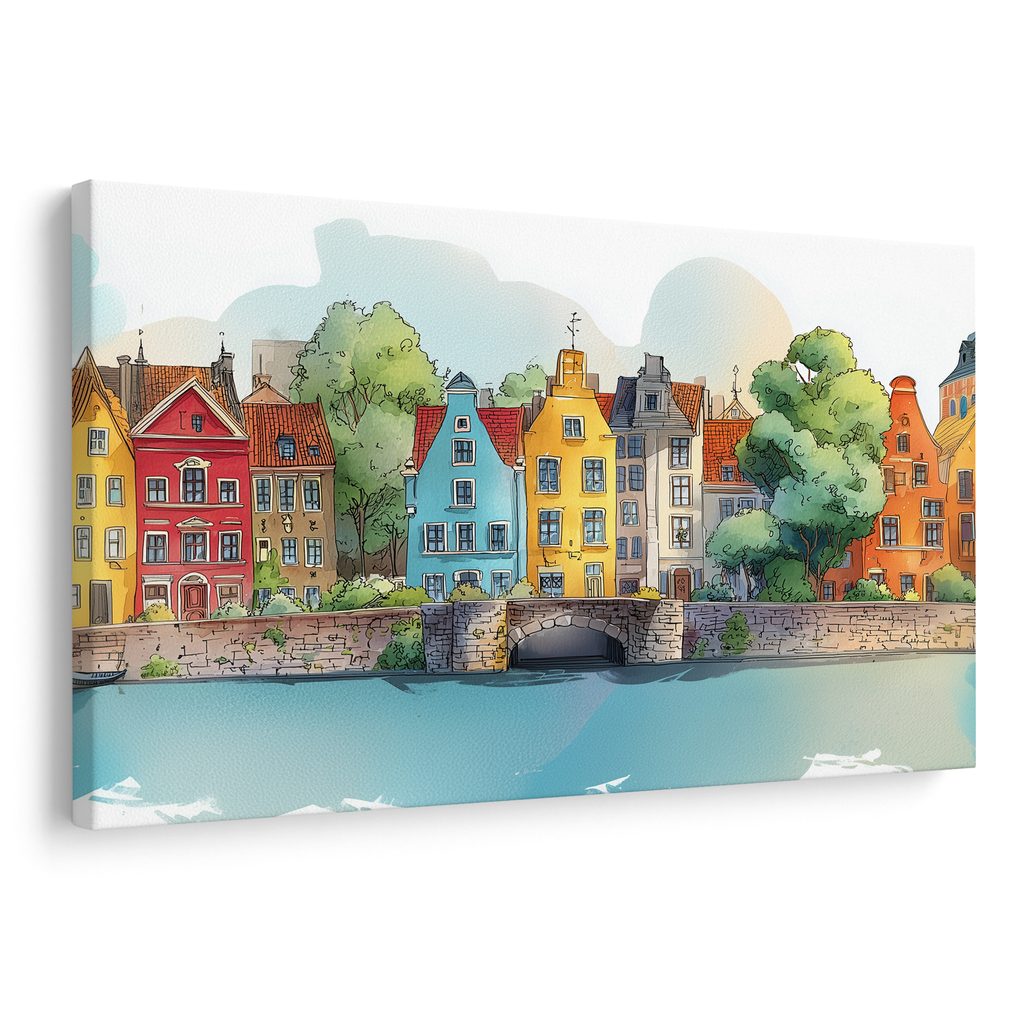 OBRAZ HISTORICKÉ MĚSTO U ŘEKY - BAREVNÉ DOMY - OBRAZY