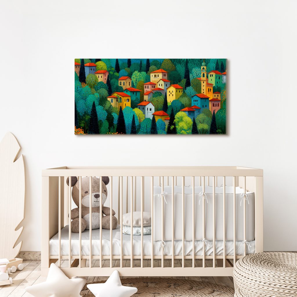 OBRAZ BAREVNÉ DOMY A STROMY - BAREVNÉ DOMY - OBRAZY