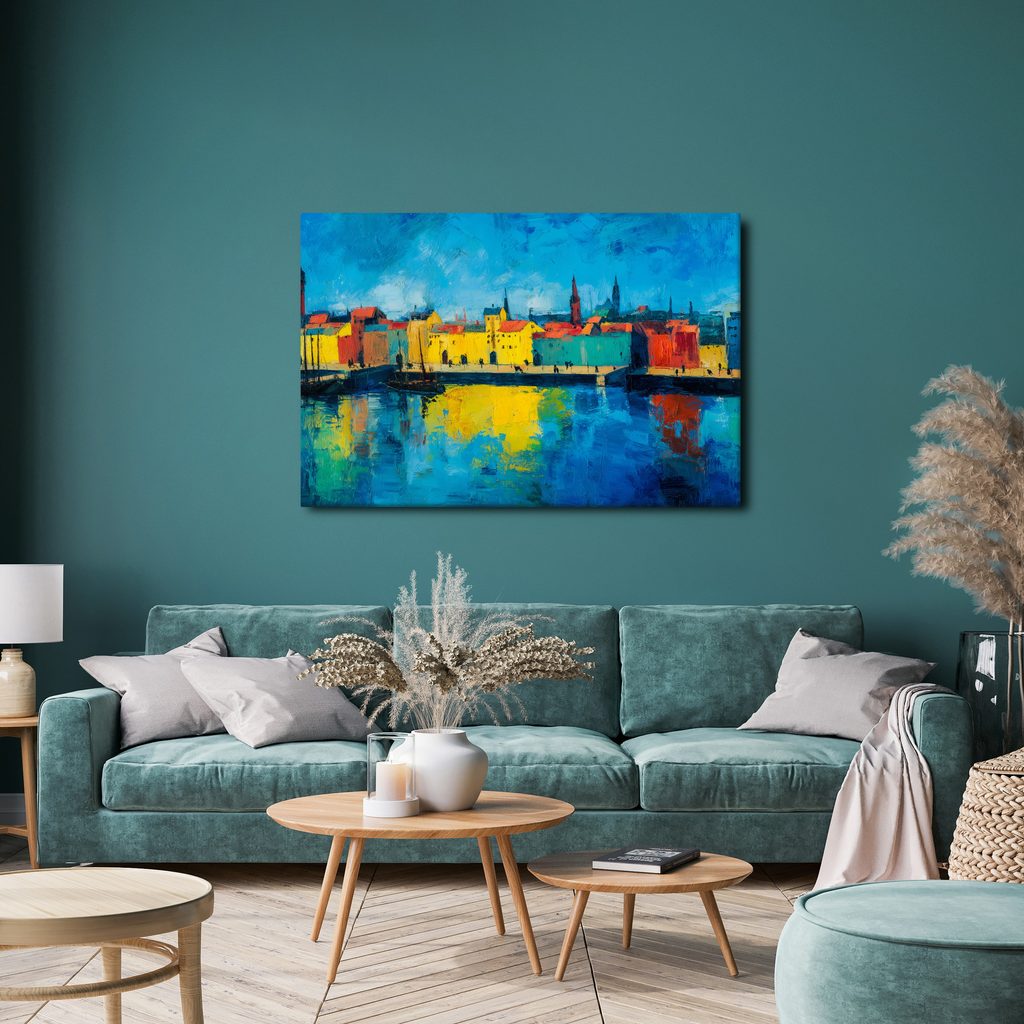 Obraz barevné město u řeky