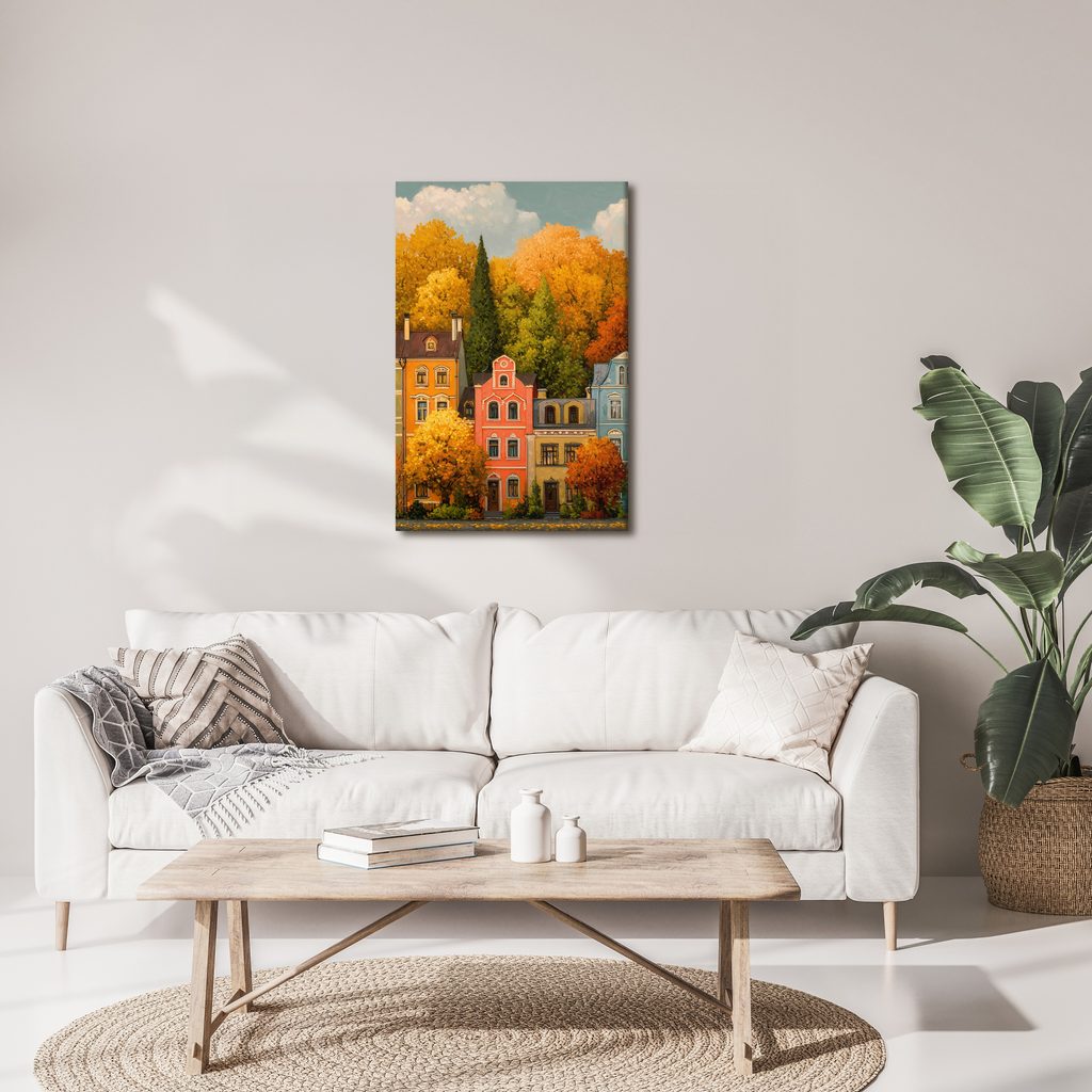 OBRAZ BAREVNÉ DOMY A STROMY - BAREVNÉ DOMY - OBRAZY