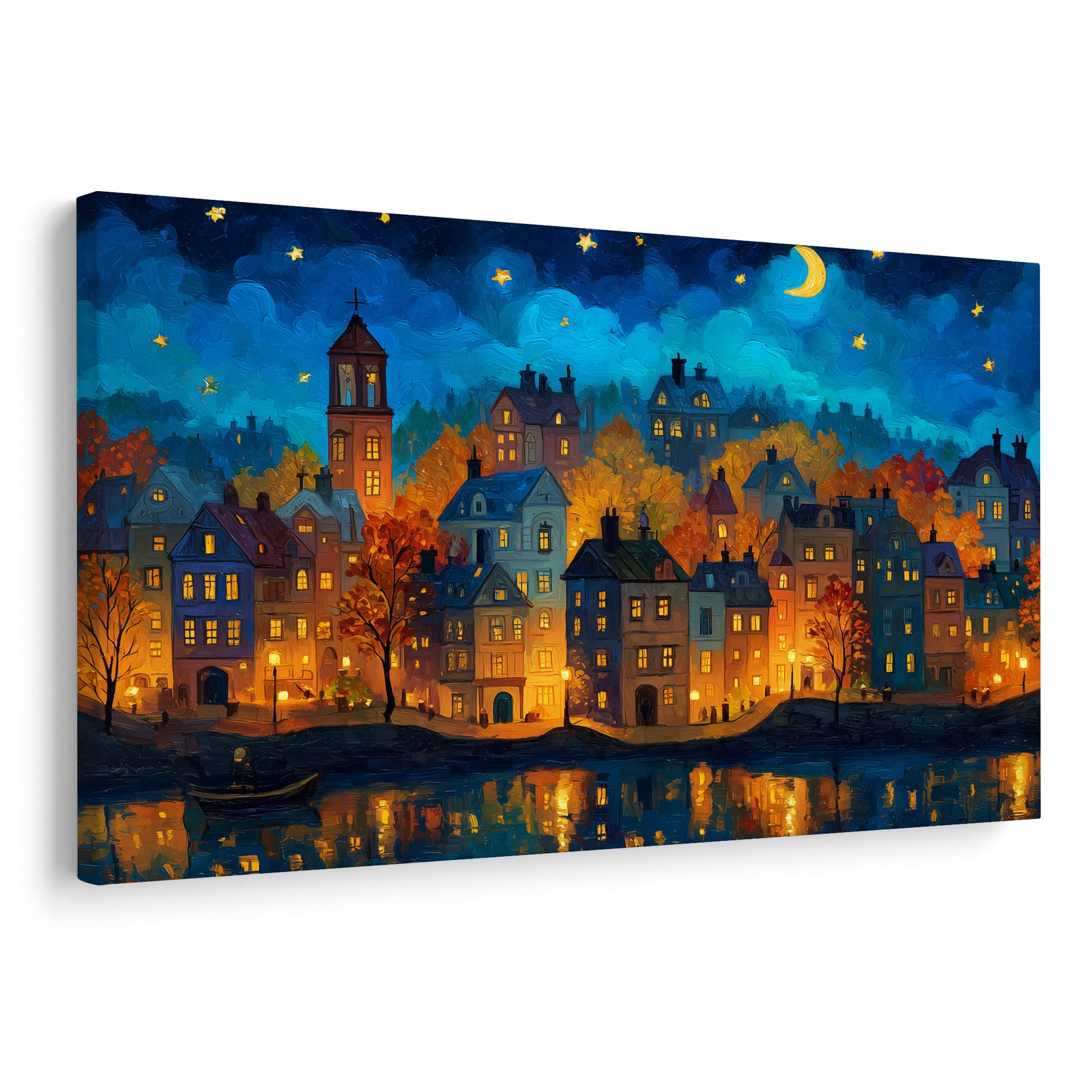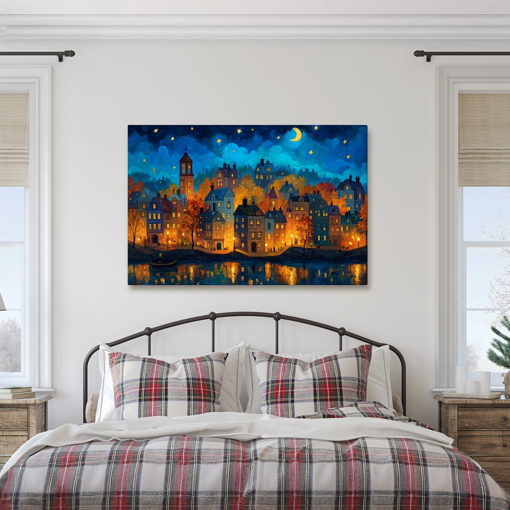 OBRAZ VEČERNÍ MĚSTSKÁ SCENÉRIE - BAREVNÉ DOMY - OBRAZY