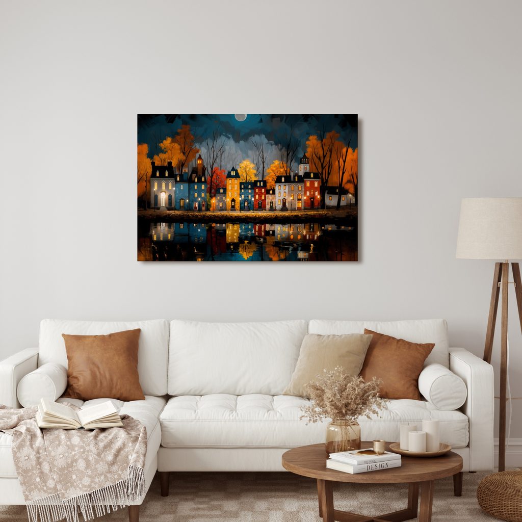 OBRAZ VEČERNÍ MĚSTSKÁ SCENÉRIE - BAREVNÉ DOMY - OBRAZY