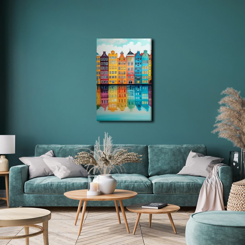 OBRAZ ROMANTICKÁ ŘEKA A DOMY - BAREVNÉ DOMY - OBRAZY