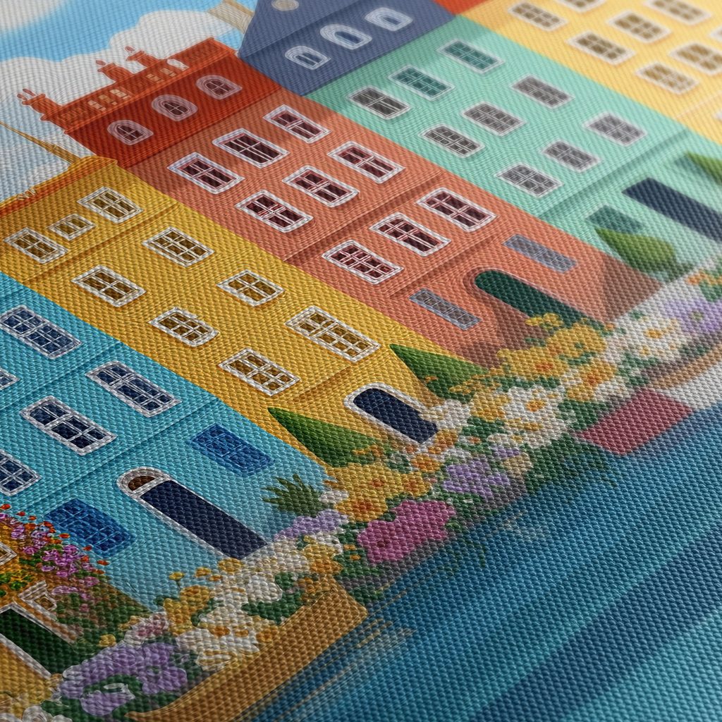OBRAZ MALEBNÁ VESNICE S KVĚTINAMI - BAREVNÉ DOMY - OBRAZY