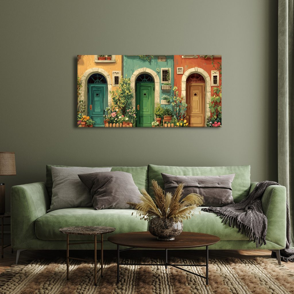 OBRAZ BAREVNÉ DOMY V ALEJI - BAREVNÉ DOMY - OBRAZY