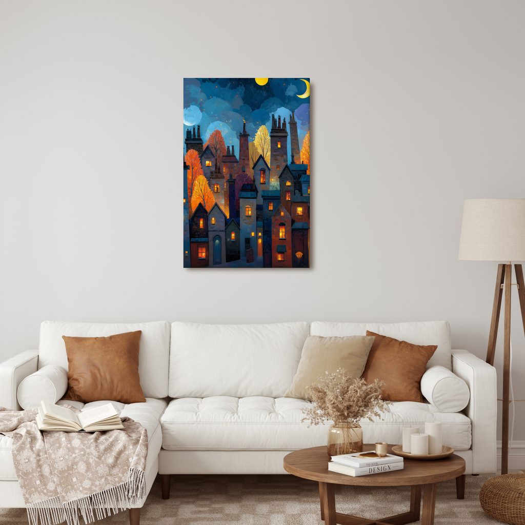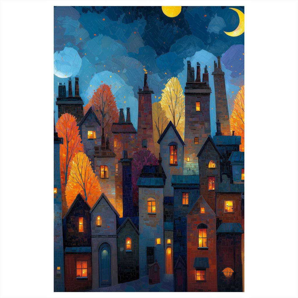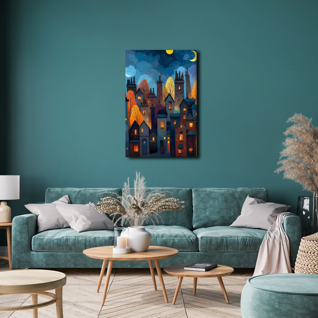 OBRAZ VEČERNÍ MĚSTSKÁ SCENÉRIE - BAREVNÉ DOMY - OBRAZY