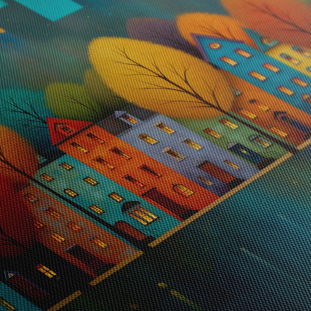 OBRAZ VEČERNÍ MĚSTSKÁ SCENÉRIE - BAREVNÉ DOMY - OBRAZY