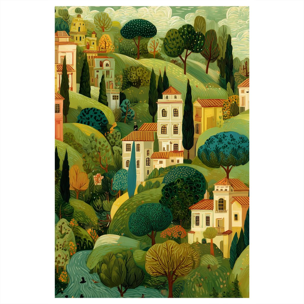 Obraz venkovská idyla a kopce
