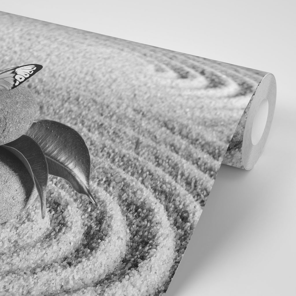 Motiv této fototapety zobrazuje elegantního černobílého motýla sedícího na dvou kamenech, obklopeného jemnými liniemi písku. Detaily jako hladké kameny a křehký motýl vytvářejí harmonickou kompozici, která evokuje klid a rovnováhu. Černobílé provedení posiluje minimalistickou atmosféru a dodává prostoru sofistikovaný nádech. Tato tapeta je ideální pro vytvoření relaxačního prostředí v obývacím pokoji, ložnici nebo wellness zóně. Kvalitní tisk a materiál zaručují dlouhou životnost a snadnou aplikaci na stěnu.