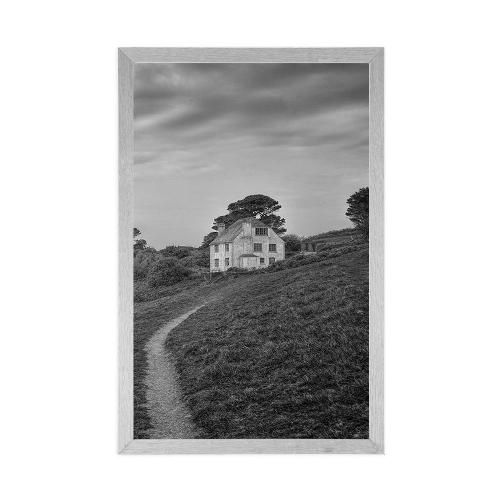 Plakát dům na útesu v černobílém provedení