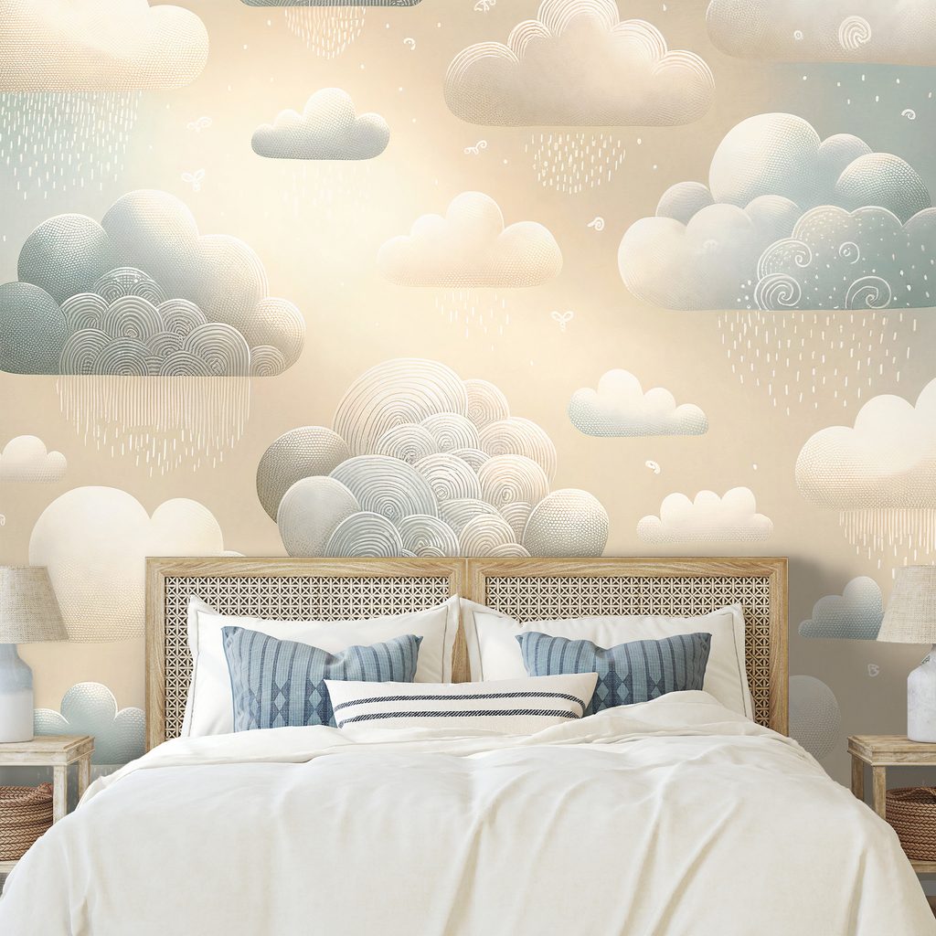 Fototapeta s pohádkovými dešťovými mraky přináší do vašeho prostoru kouzelnou atmosféru. Jemné detaily mraků v různých tvarech a odstínech vytvářejí harmonický a klidný vzhled. Pastelové barvy modré a béžové evokují pocit pohody a lehkosti. Ideální pro dětské pokoje, obývací prostory nebo relaxační zóny. Tapeta je vyrobena z kvalitních materiálů, které zaručují dlouhou životnost a snadnou aplikaci.