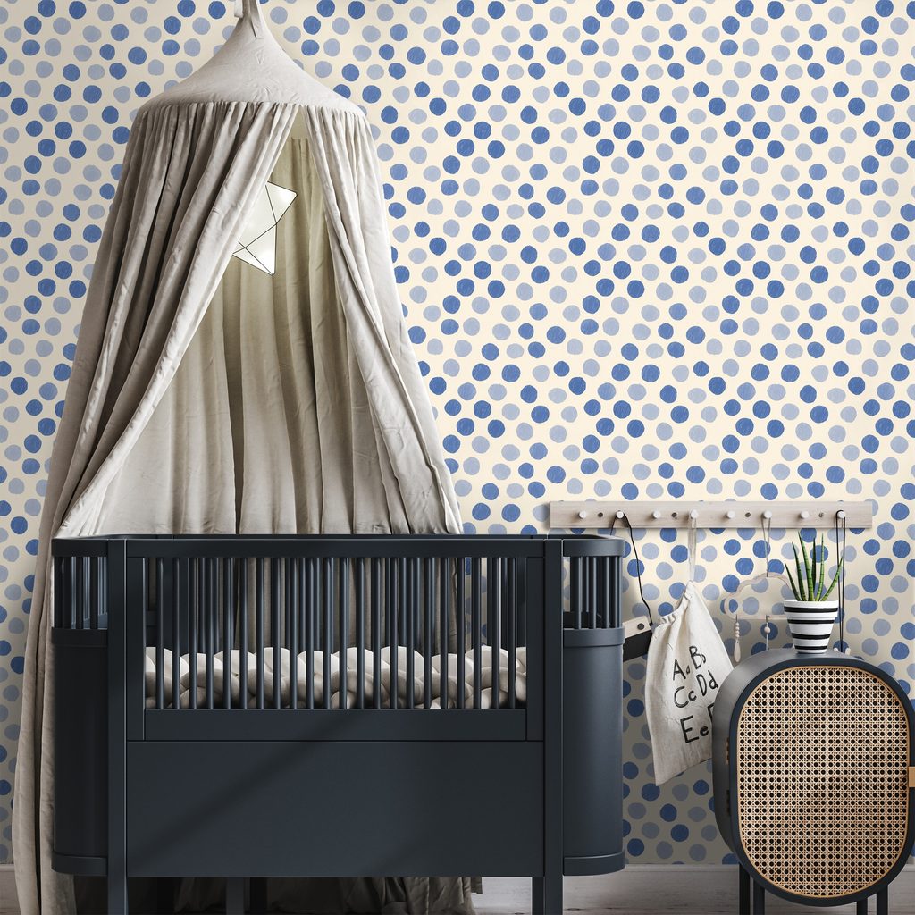 Samolepící tapeta modré puntíky na béžovém pozadí