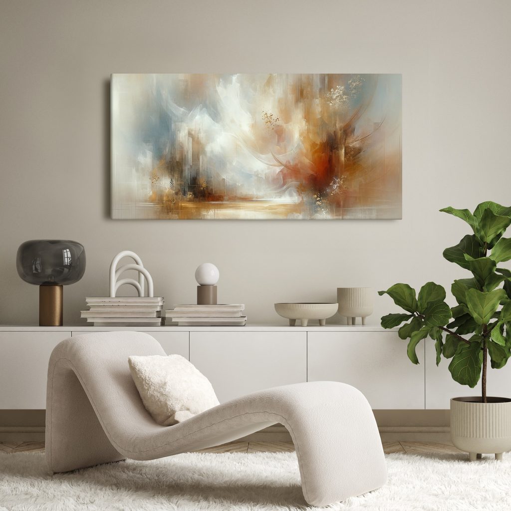 Moderní hřejivá abstrakce přináší do vašeho interiéru jedinečný styl. Kombinace jemných barev jako jsou béžová, hnědá a modrá vytváří harmonickou atmosféru. Vzdušné tvary a dynamické prvky dodávají obrazu pohyb a energii. Ideální pro obývací pokoj nebo pracovnu, kde vytvoří příjemné prostředí. Obraz je vytištěn na kvalitním plátně, což zajišťuje dlouhou životnost a estetický dojem.