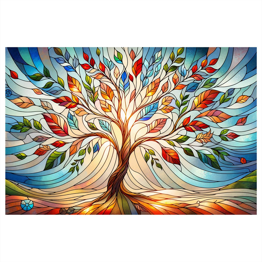 Obraz strom života v barevné vitráži