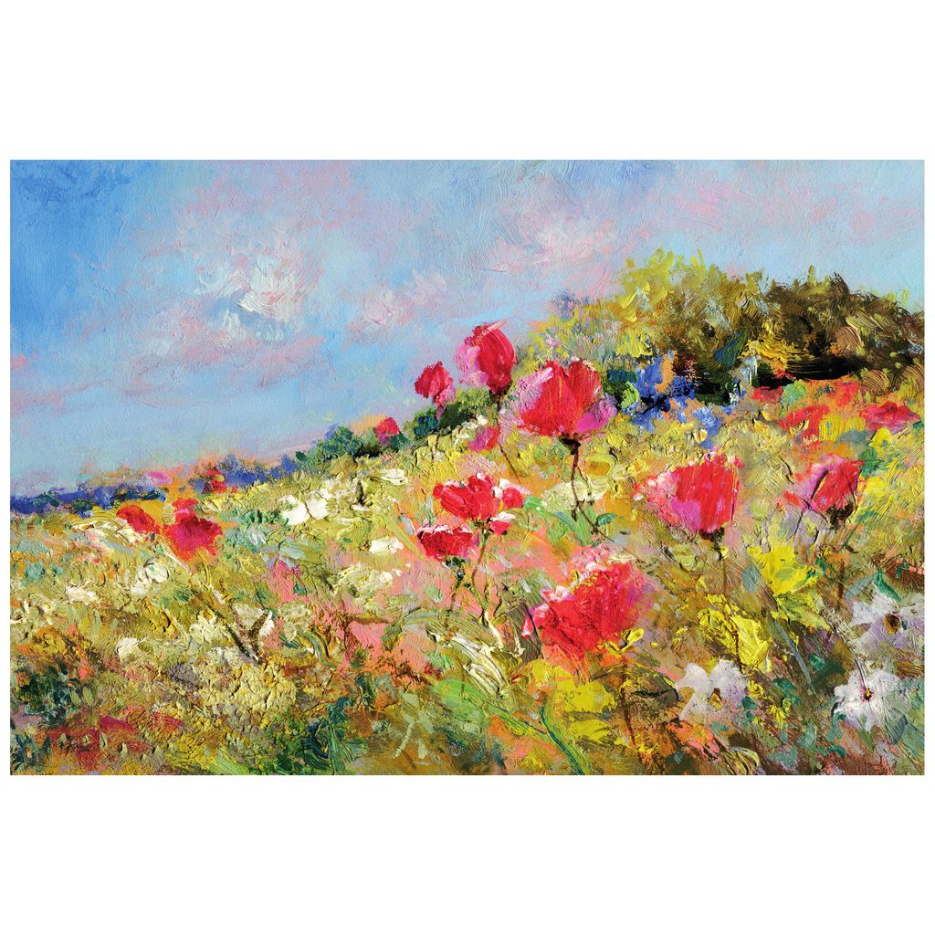 Samolepící tapeta s motivem malovaných máků na louce přináší do vašeho interiéru svěžest a přírodní krásu. Živé červené květy v kontrastu s jemnými bílými a zelenými tóny vytvářejí harmonickou atmosféru. Tapeta je prosvětlená modrou oblohou, která dodává prostoru vzdušnost a lehkost. Skvěle se hodí do obývacího pokoje, ložnice nebo pracovny pro oživení stěn a vytvoření příjemného prostředí. Produkt je vyroben z kvalitního materiálu, který zajišťuje snadnou aplikaci a dlouhou životnost.