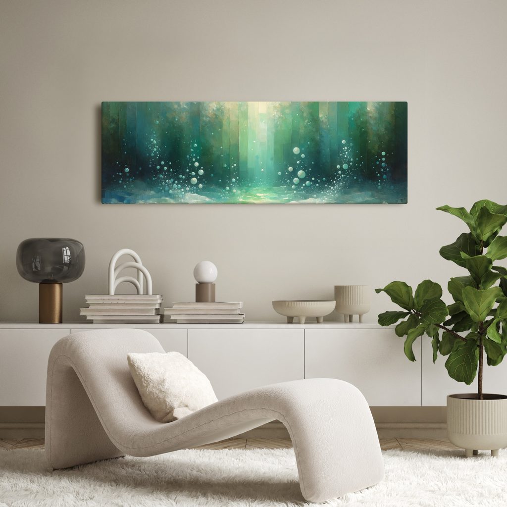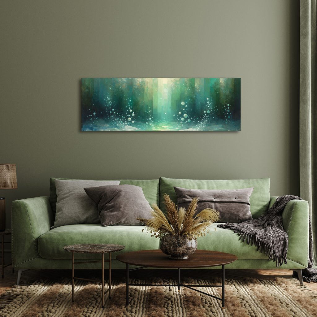 Obraz s motivem bublin v hlubinách zachycuje fascinující podvodní svět. Jemné bubliny se vznášejí v odstínech modré a zelené, zatímco pozadí vytváří atmosféru klidu a tajemství. Kombinace barev navozuje osvěžující pocit, ideální pro relaxaci. Tento obraz skvěle doplní interiér obývacího pokoje nebo pracovny, přidá na hloubce a eleganci. Vyrobeno z kvalitního materiálu, zaručuje dlouhou životnost a snadnou údržbu.
