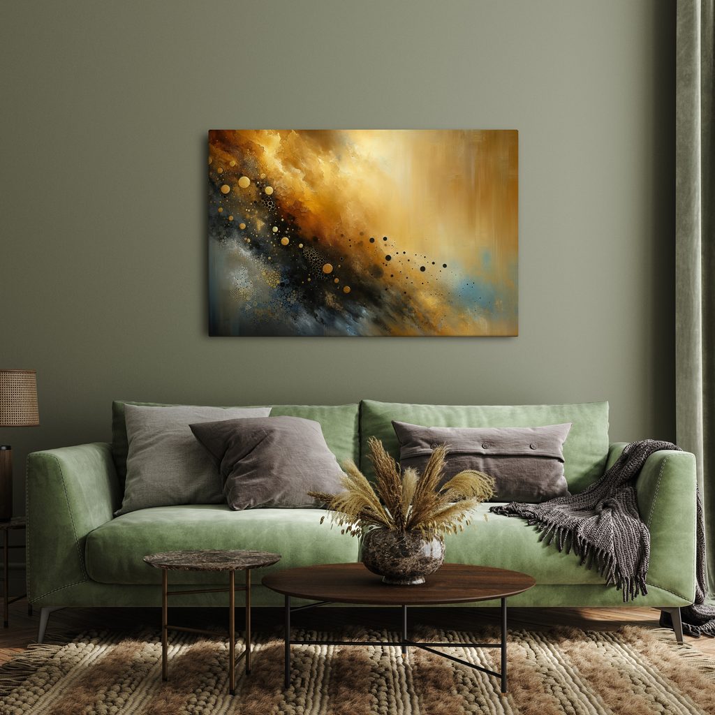Obraz nekonečného hvězdného zlata zachycuje fascinující vesmírný motiv s abstraktními prvky. Kombinace zlatých a černých tónů, spolu s jemnými detaily, vytváří dynamickou atmosféru tajemství a elegance. Tato umělecká kompozice vnese do vašeho interiéru pocit luxusu a nespoutanosti. Ideální pro moderní obývací pokoje či kanceláře, kde se chcete odlišit. Obraz je vyroben z kvalitních materiálů, zajišťujících dlouhou životnost a odolnost barev.
