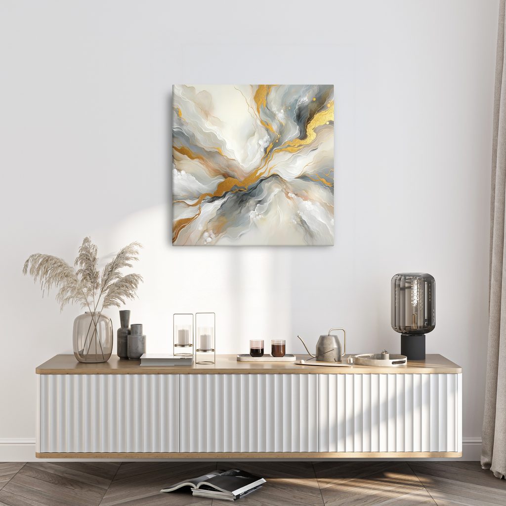 Obraz "Zlatá exploze" zachycuje dynamické abstraktní motivy s elegantními zlatými akcenty. Kombinace jemných odstínů bílé, šedé a zlaté vytváří harmonickou atmosféru plnou elegance a luxusu. Tento umělecký kousek je ideální pro moderní interiéry, kde dodá prostoru sofistikovaný nádech. Vhodný je jak do obývacího pokoje, tak do pracovny nebo ložnice. Kvalitní tisk na plátno zaručuje dlouhou životnost a barevnou stálost.