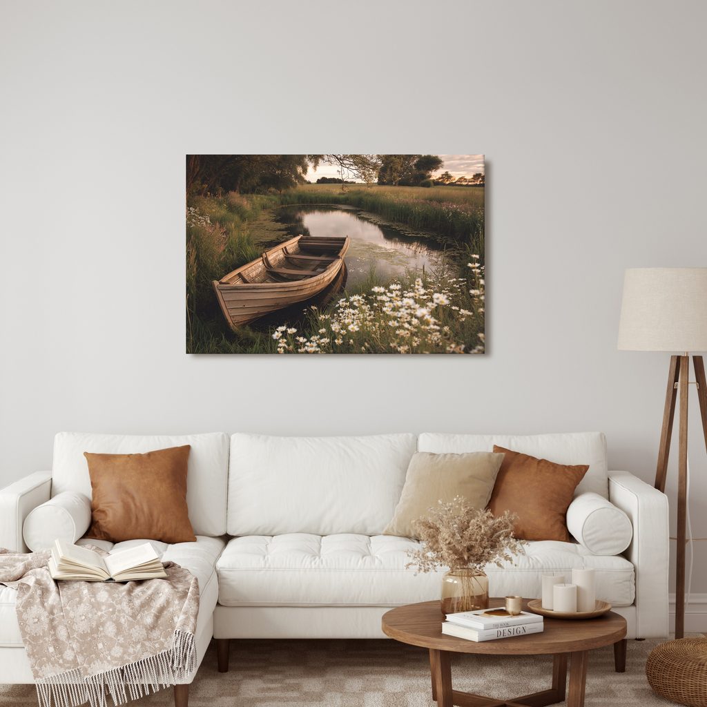 Obraz loďka v květinové zátoce