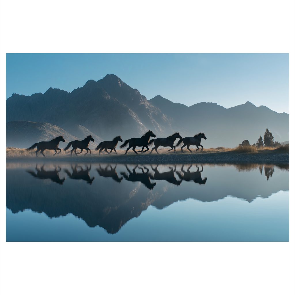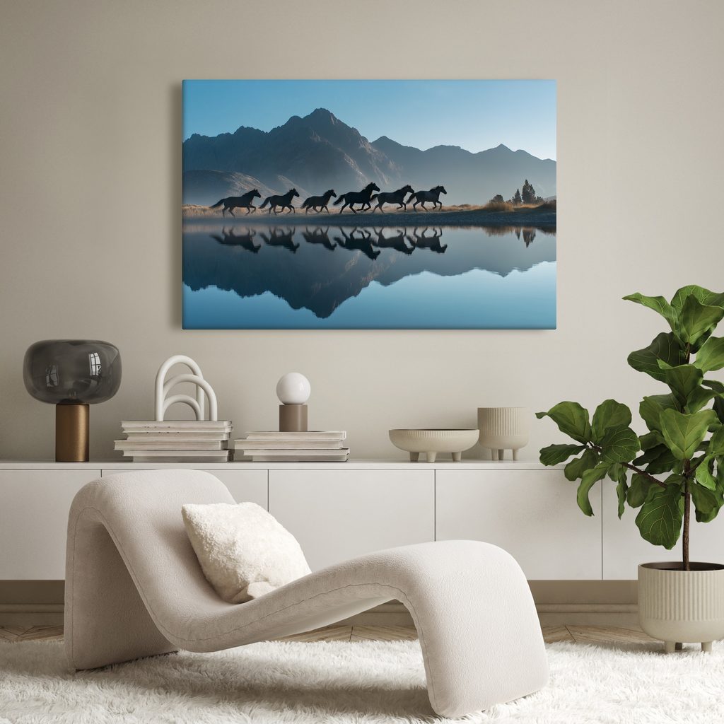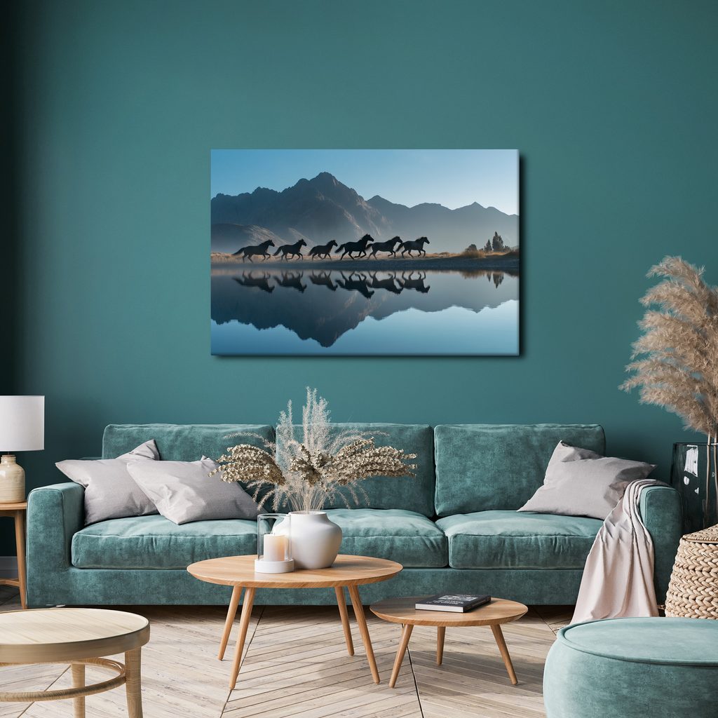 OBRAZ DIVOKÝ BĚH U JEZERA - OBRAZY KONĚ - OBRAZY