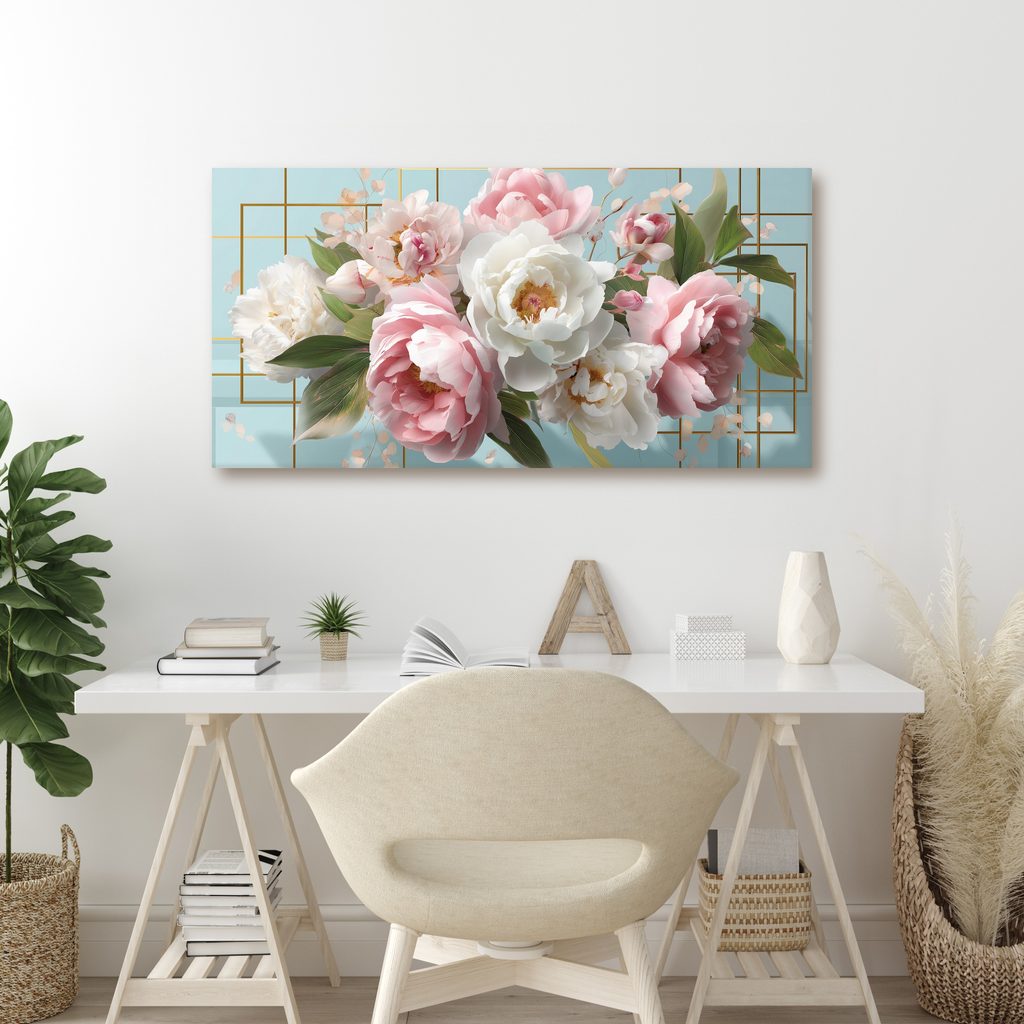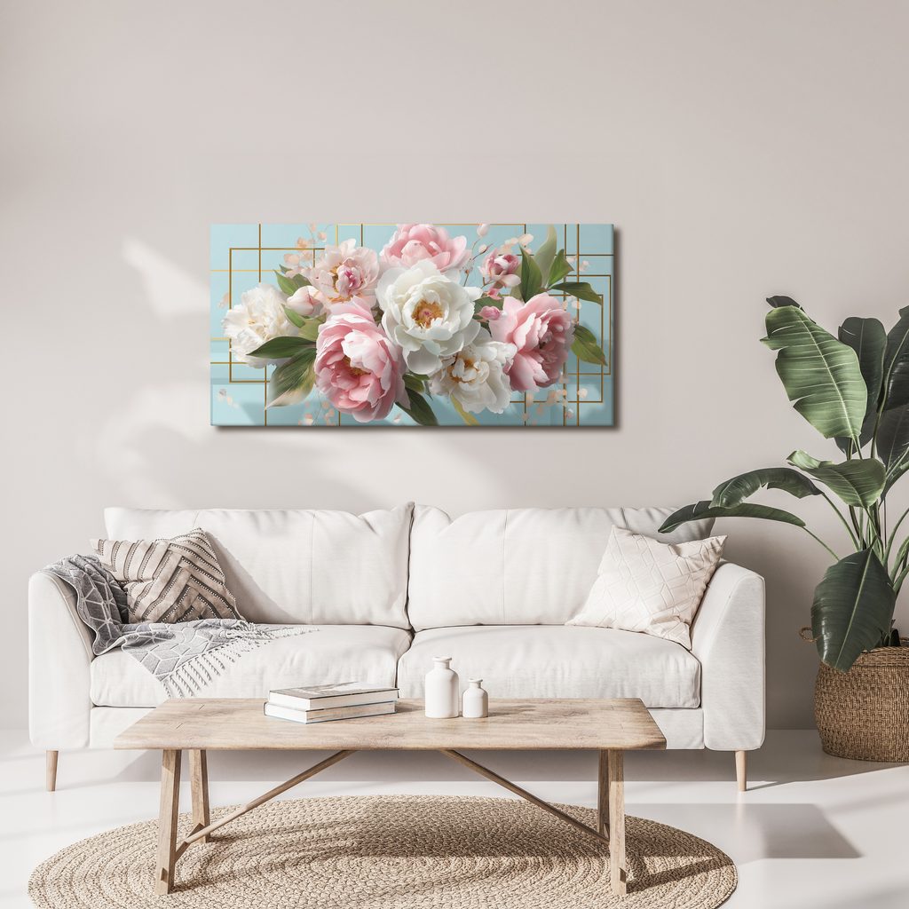 Obraz jemné růžové a bílé pivoňky