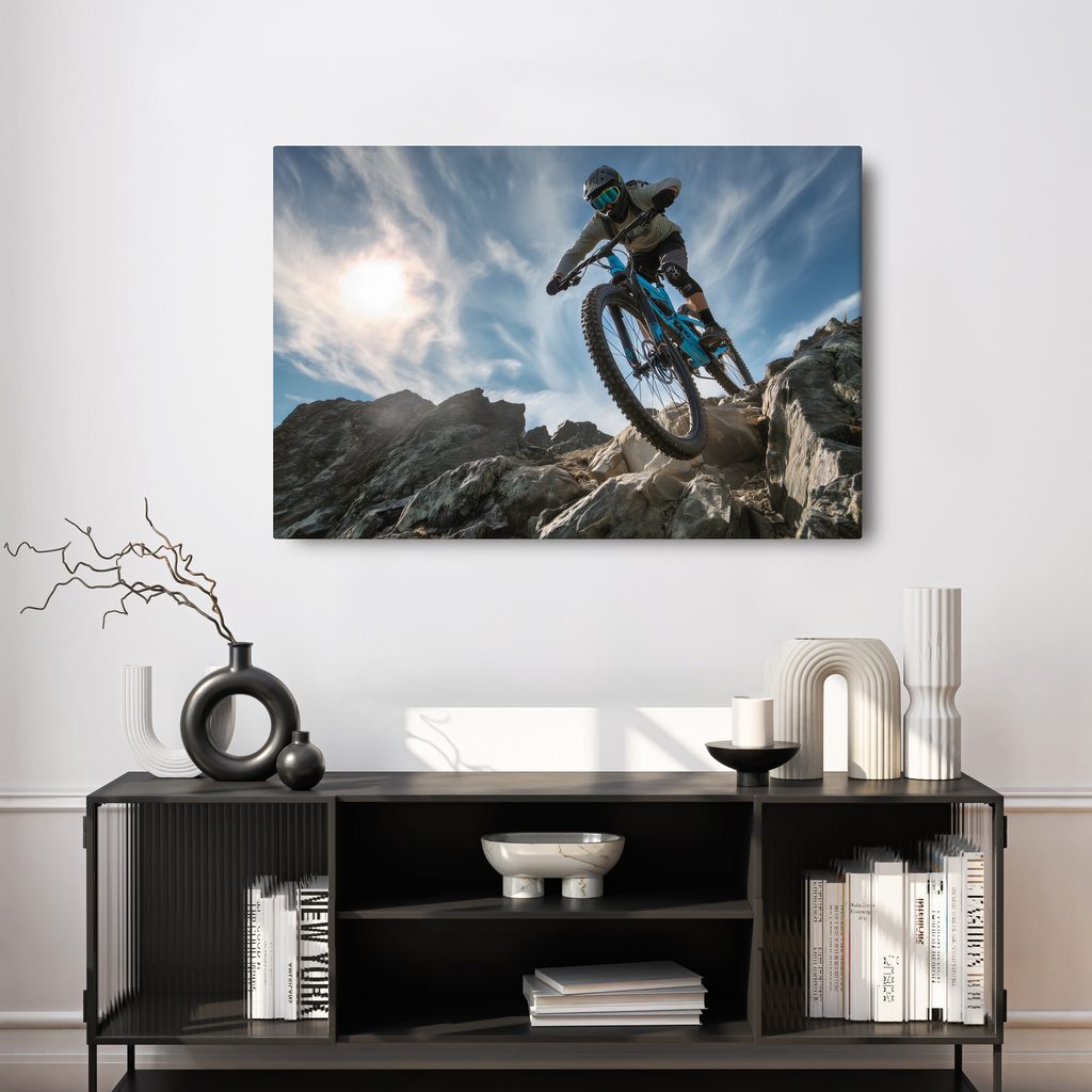 Obraz cyklista na horské stezce