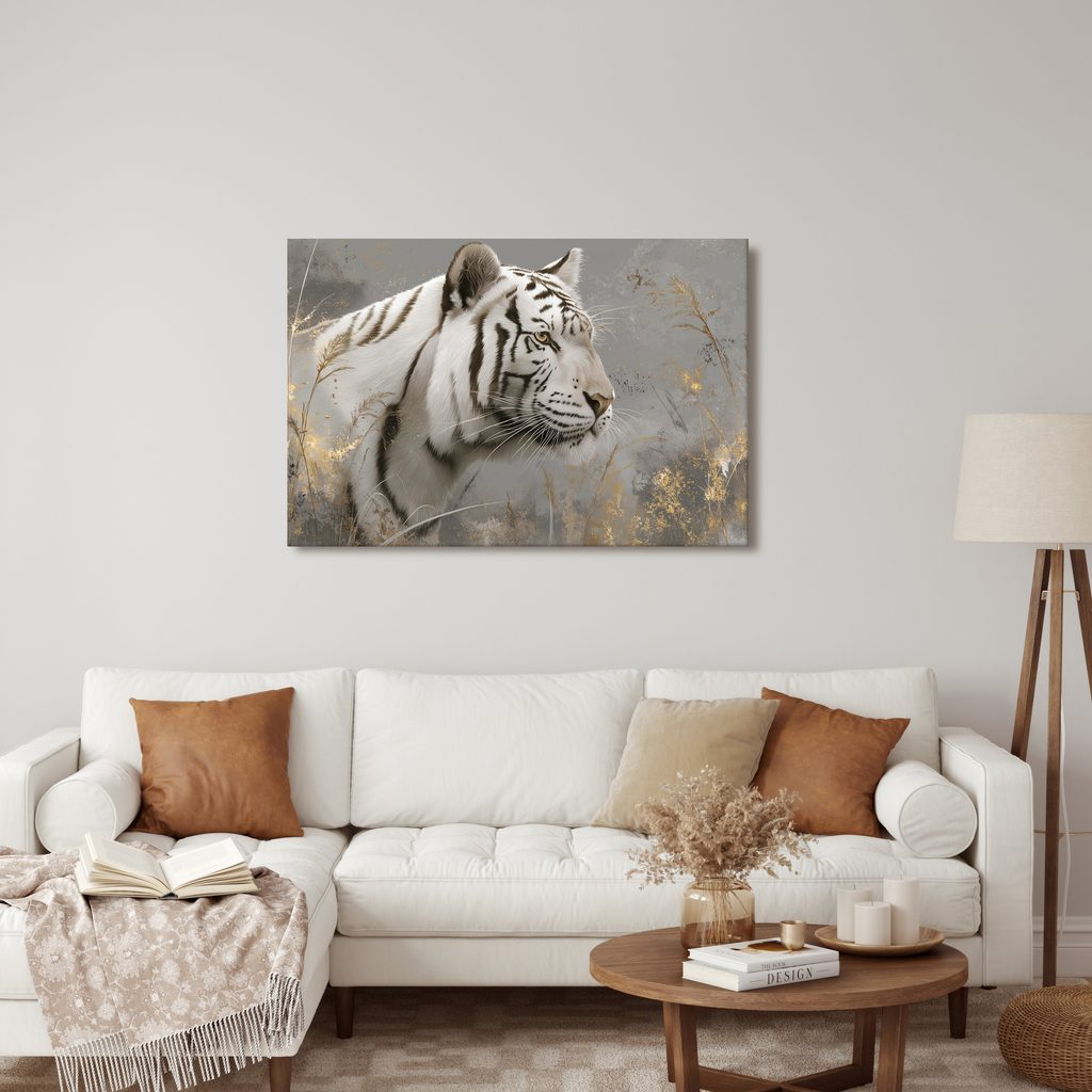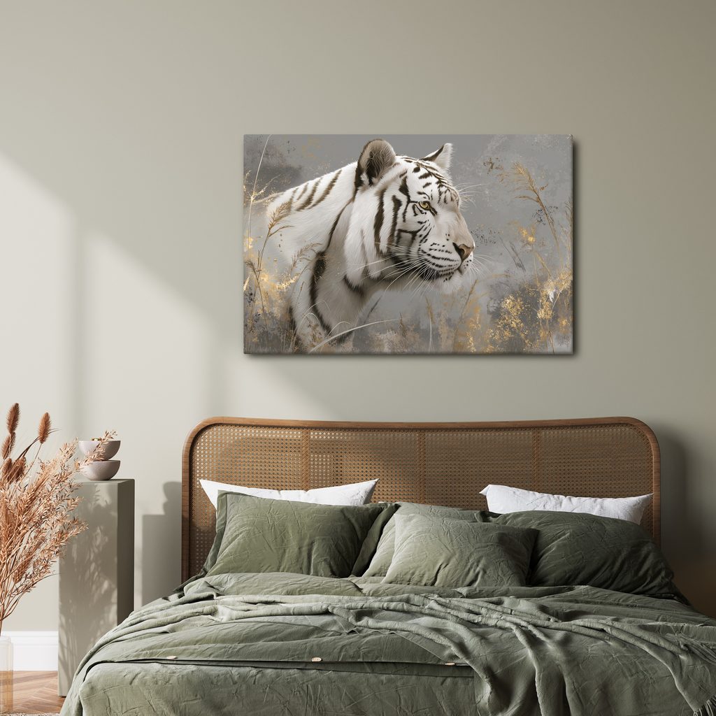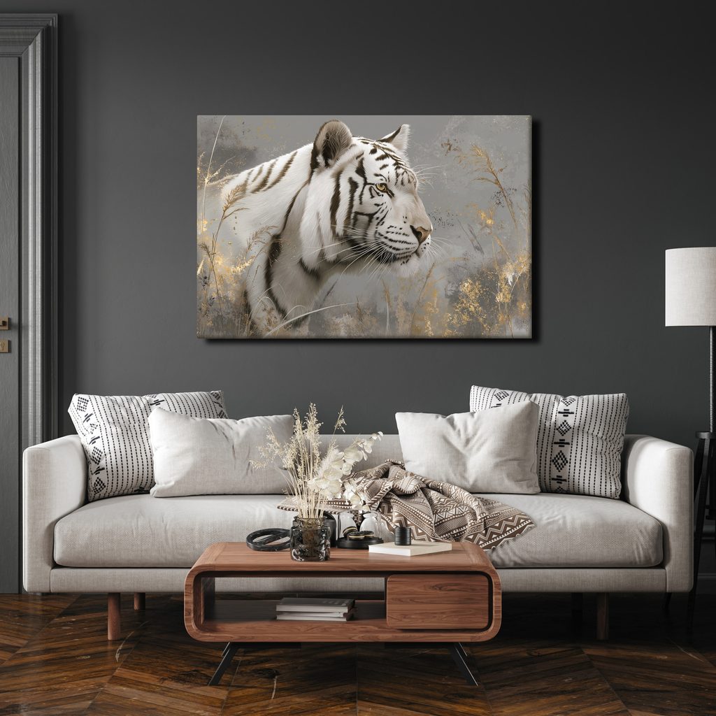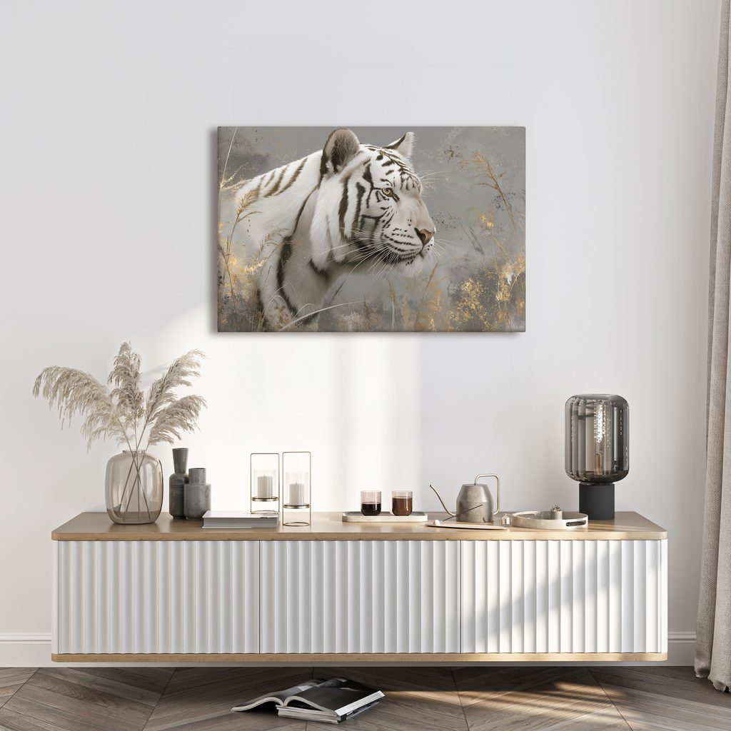 Obraz bílý tygr v trávě