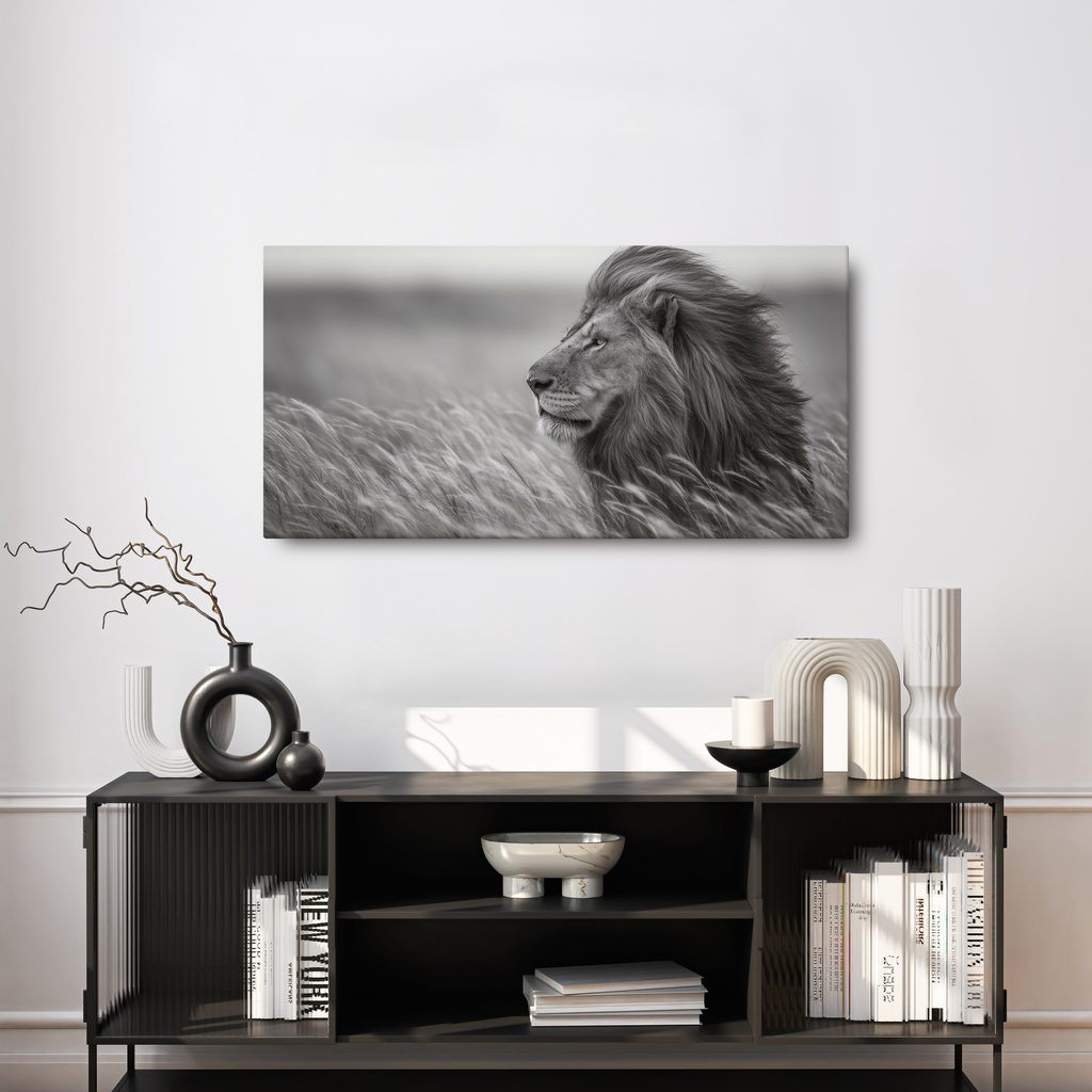 OBRAZ MLÁDĚ LVA V ČERNOBÍLÉM PROVEDENÍ - ČERNOBÍLÉ OBRAZY - OBRAZY
