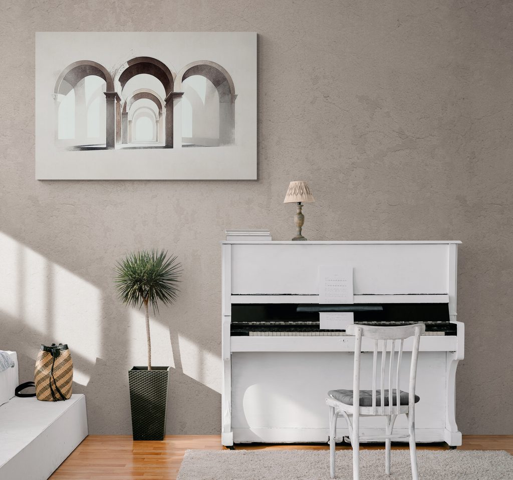 Obraz kouzlo rustikálních oblouků zobrazuje elegantní architektonické prvky s několika oblouky. Detailní zpracování sloupů a stínů vytváří hloubku a prostor, což přidává na atraktivitě. Barevná paleta se skládá převážně z jemných odstínů béžové a šedé, což evokuje klidnou a harmonickou atmosféru. Tento obraz je ideální pro dekoraci interiérů, kde podtrhuje styl a eleganci. Vyroben je z kvalitních materiálů, což zaručuje dlouhou životnost a trvanlivost.