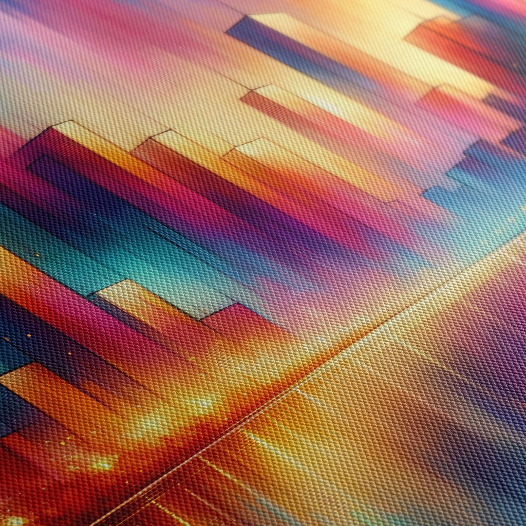 Obraz zářivého města v noci zachycuje moderní panorama plné barev a světel. Vysoké budovy se tyčí do výšky, zatímco jejich odraz se mísí s živými odstíny modré, růžové a zlaté. Atmosféra je dynamická a energická, přinášející pocit městského života a večerního rozmachu. Tento obraz je ideální volbou pro oživení interiéru a dodání moderního nádechu do obývacího pokoje nebo kanceláře. Kvalita tisku zaručuje živé barvy a dlouhou životnost, což z něj činí skvělou investici do vašeho domova.