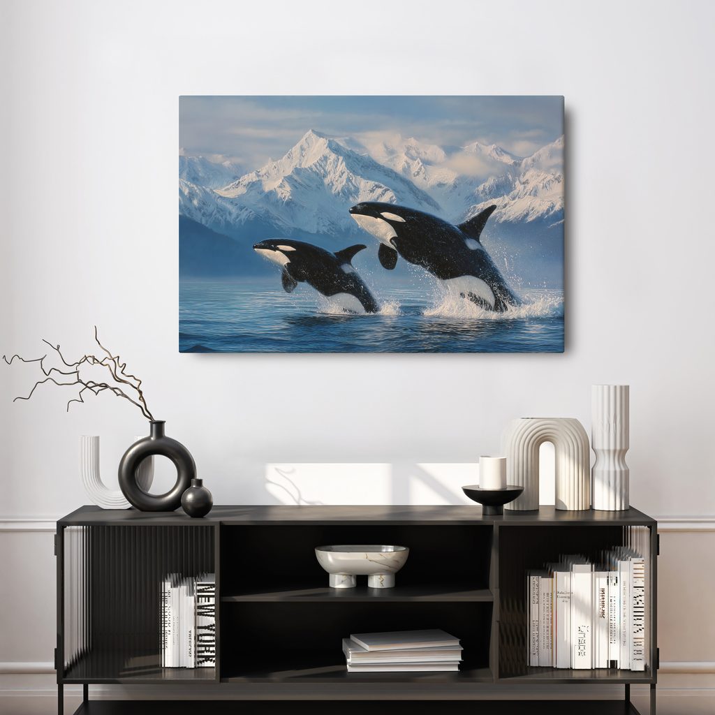 Obraz skákající kosatky v horách