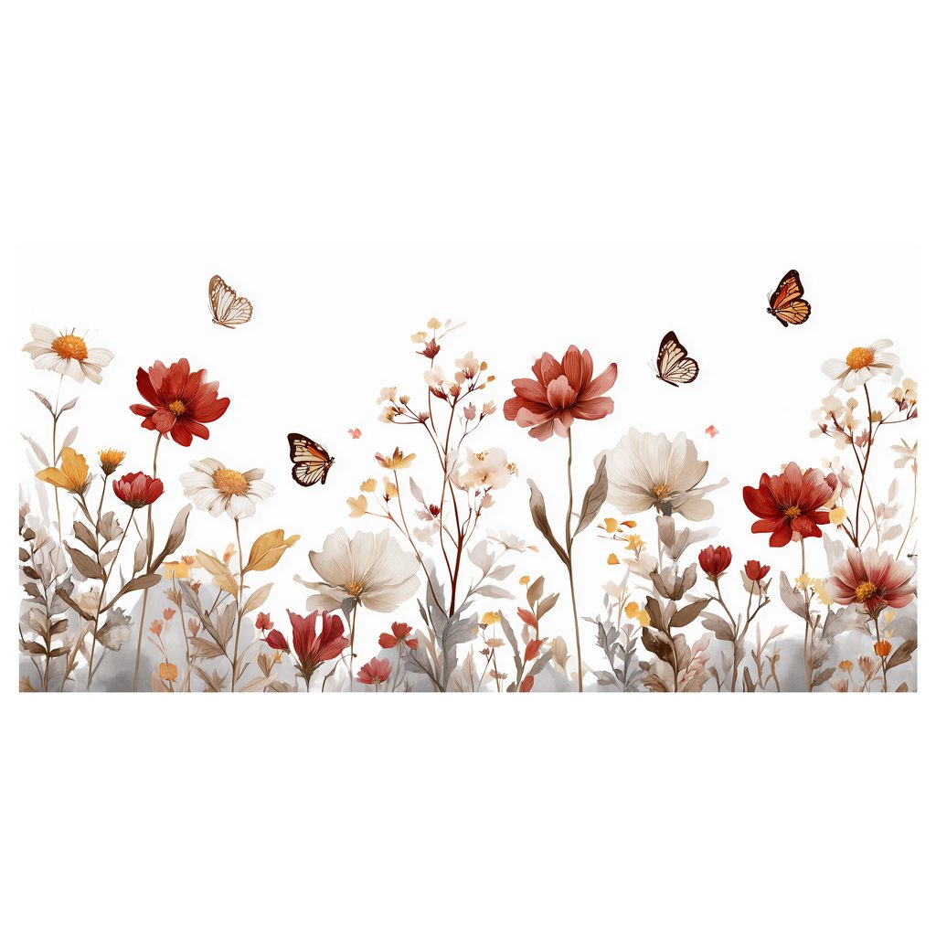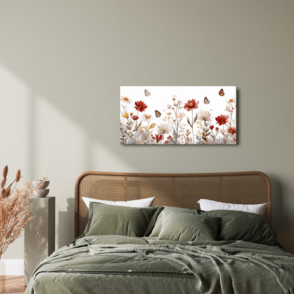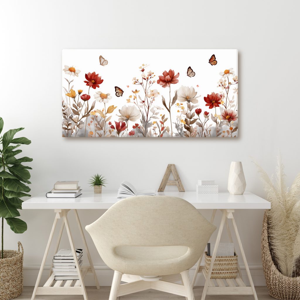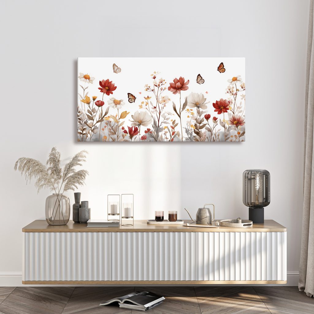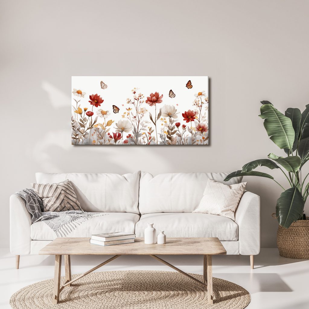 Obraz rozkvetlá louka s motýly