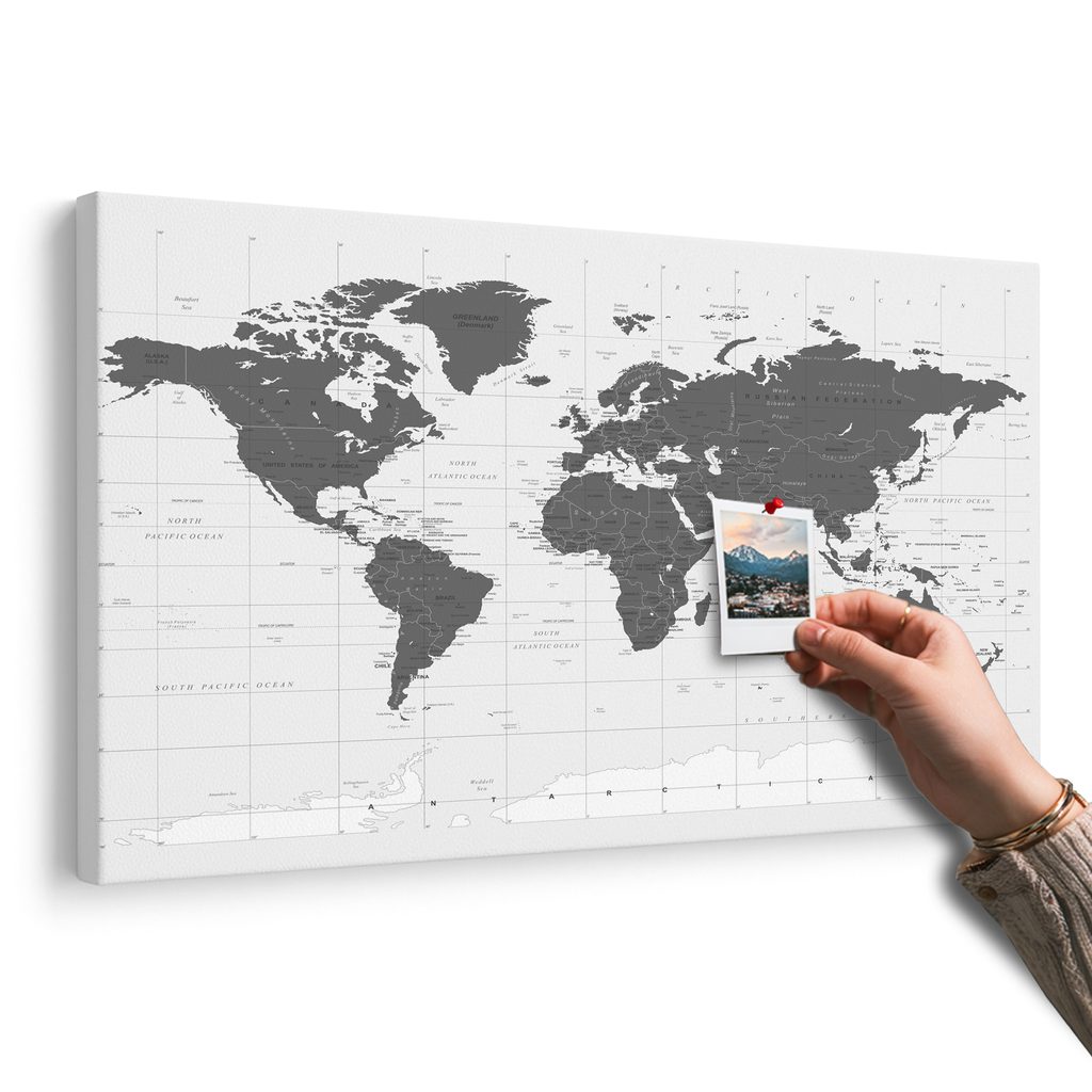 OBRAZ NA KORKU POLITICKÁ MAPA SVĚTA V ČERNOBÍLÉM PROVEDENÍ - OBRAZY NA KORKU - OBRAZY