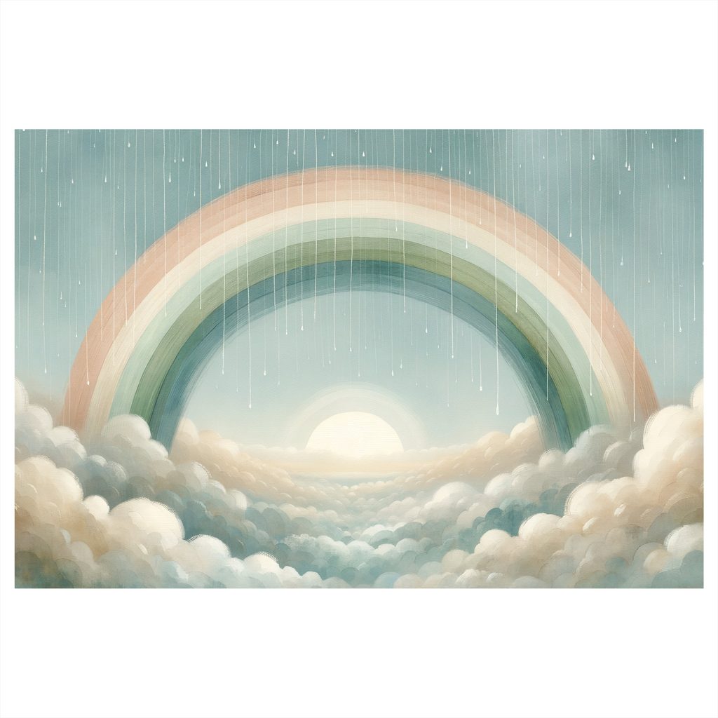 Obraz zachycuje nádhernou duhu nad mořem oblaků. V popředí se nachází jemné, nadýchané mraky, zatímco duha v pastelových barvách dominují celému motivu. Barvy jsou uklidňující a vytvářejí harmonickou atmosféru, která evokuje klid a pohodu. Tento obraz je ideální pro zkrášlení vašeho interiéru a přináší do něj pozitivní energii. Kvalitní zpracování zaručuje dlouhou životnost a stálost barev.