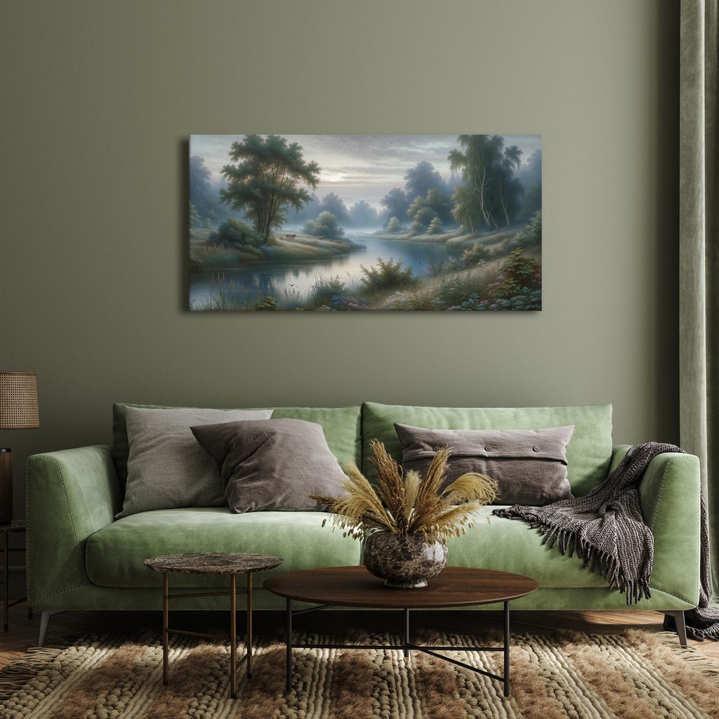 Obraz "Tichá řeka" zachycuje klidnou scénu s řekou obklopenou zelení. Na plátně se rozprostírají jemné detaily přírody, jako jsou stromy, keře a květiny, které vytvářejí harmonický celek. Dominují zde jemné odstíny modré a zelené, které podtrhují poklidnou atmosféru a přinášejí do interiéru pocit uvolnění. Tento obraz je ideální volbou pro zklidnění prostoru, jako je obývací pokoj nebo ložnice. Kvalitní provedení zaručuje dlouhou životnost a estetickou hodnotu.