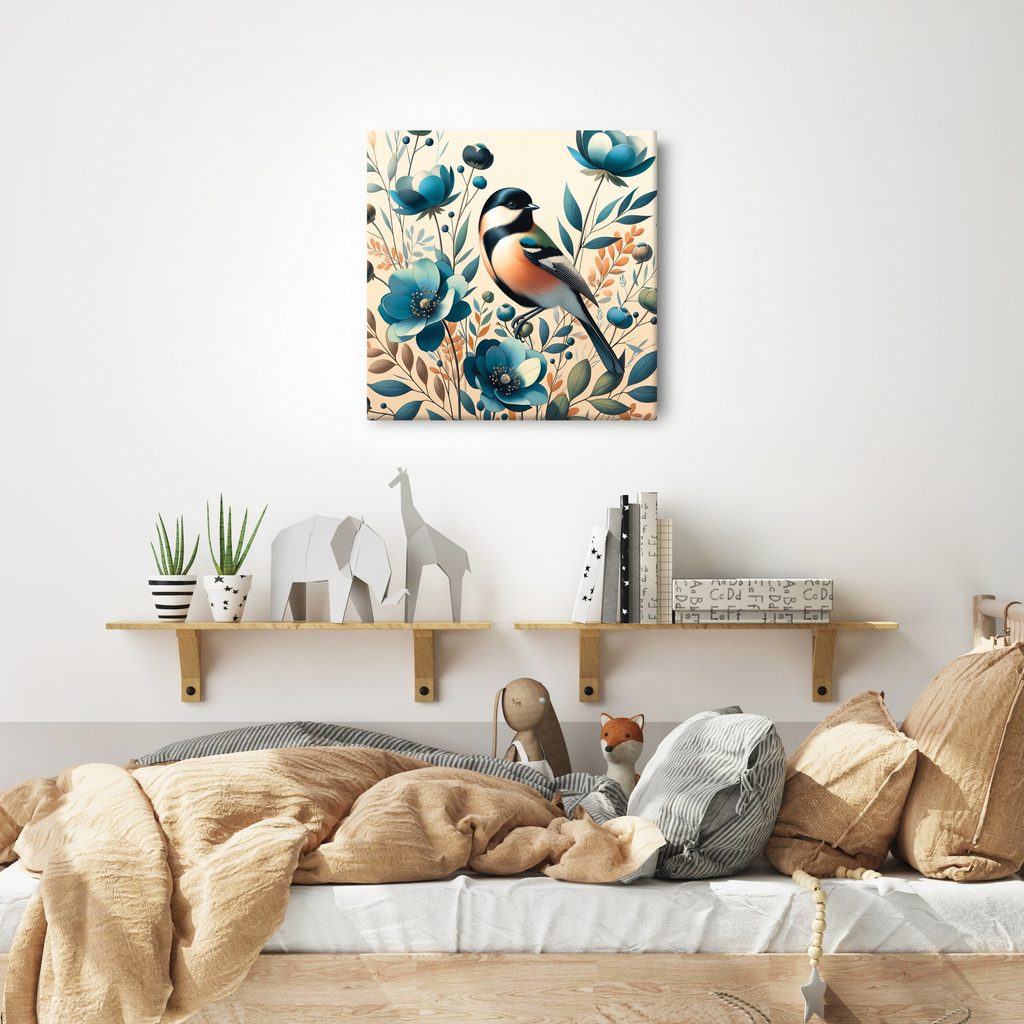 Obraz zachycuje sýkorku v krásné květinové zahradě. Detailní zpracování ptáčka i květin přináší do prostoru živost a jemnost. Dominantní modré a teplé hnědé tóny vytvářejí harmonickou atmosféru, která zaujme na první pohled. Tento obraz je ideální volbou pro oživení interiéru nebo jako stylový dárek pro milovníky přírody. Vyrobeno z kvalitních materiálů, zaručuje dlouhou životnost a stálost barev.