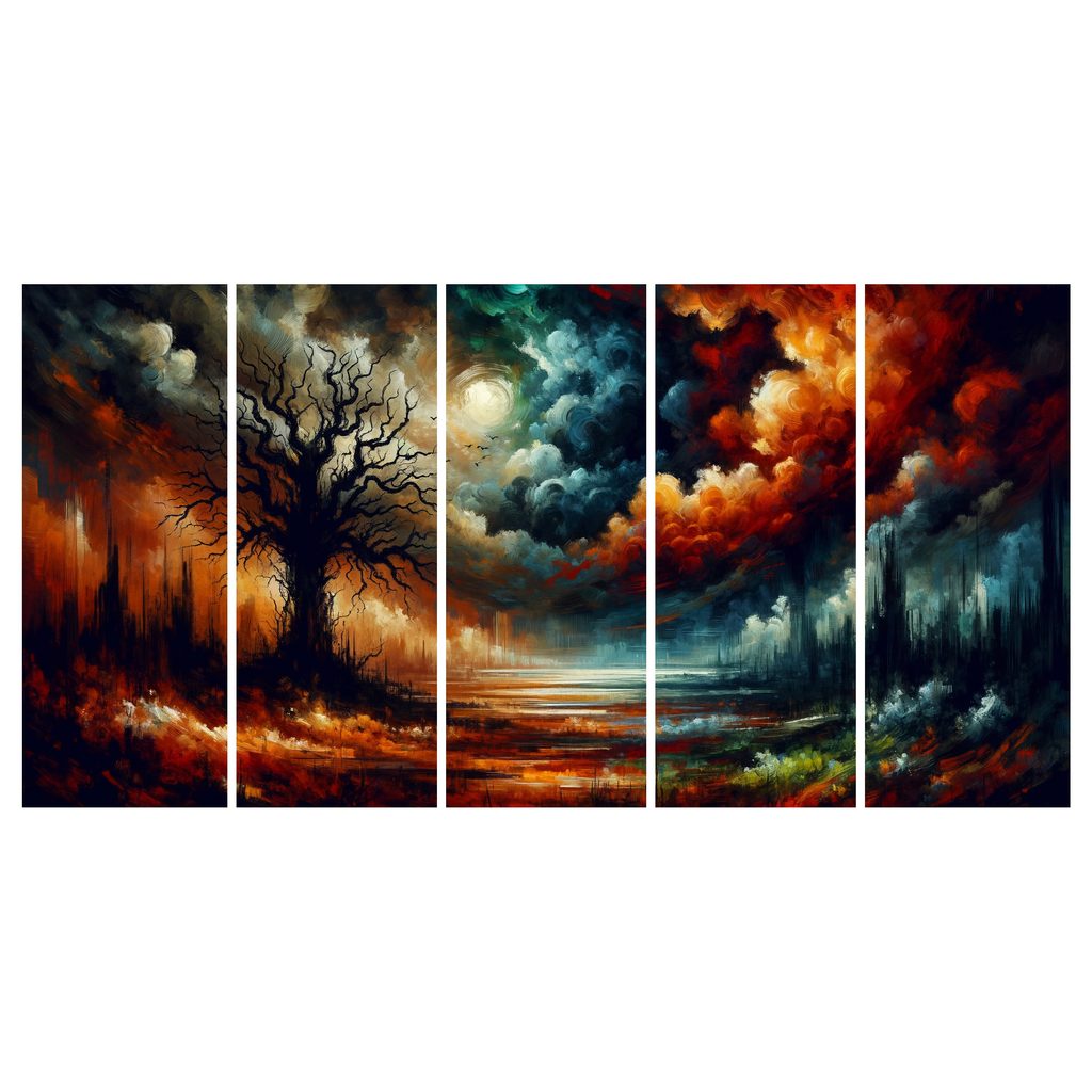 5-dílný obraz mystický strom života