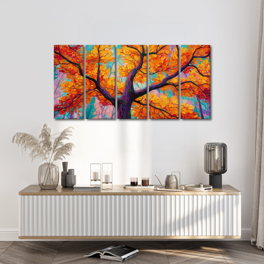 5-dílný obraz podzimní strom života