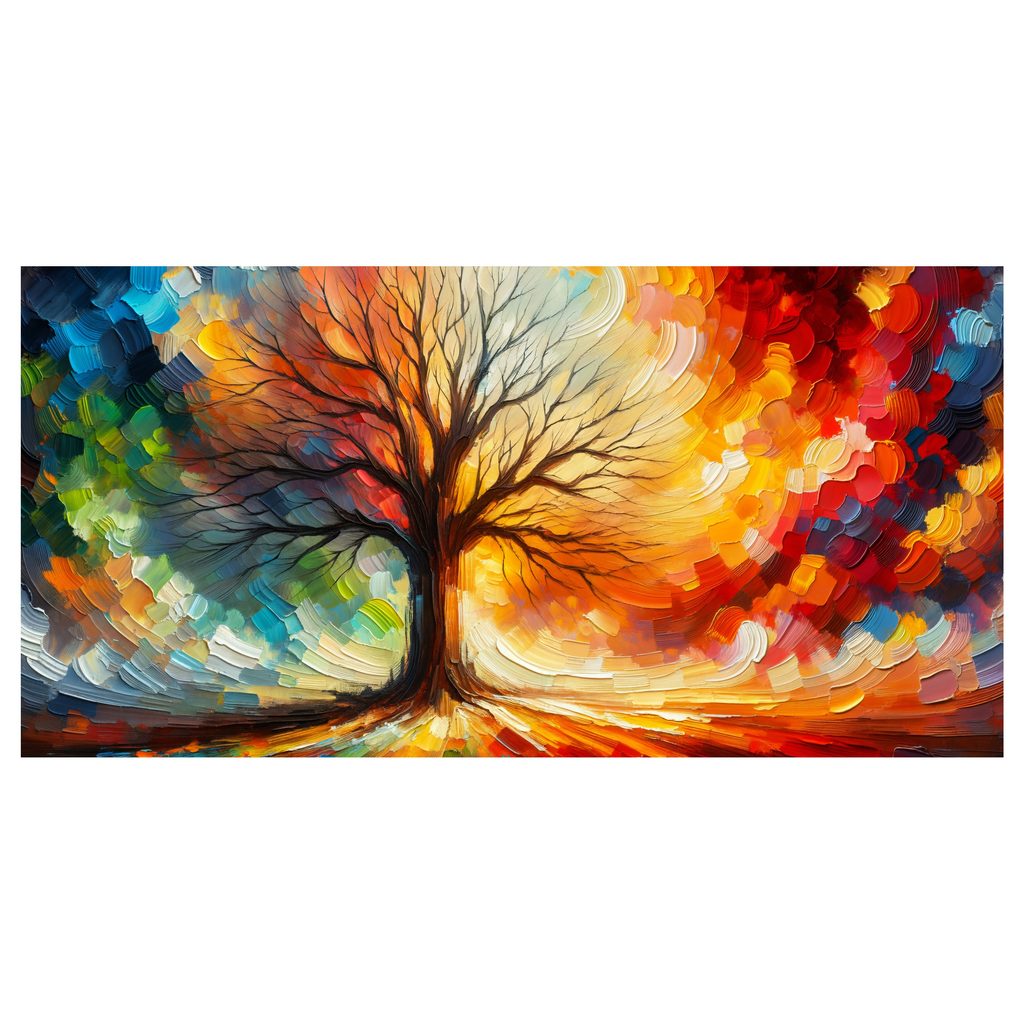 Obraz barevného stromu života snů přináší do vašeho interiéru harmonii a energii. Hlavním prvkem je majestátní strom, jehož rozvětvené větve splývají s pestrou paletou barev, která přechází od teplých tónů červené a žluté po chladnější modrou a zelenou. Atmosféra obrazu vyzařuje radost a pozitivitu, což z něj činí ideální volbu pro jakýkoliv prostor. Tento obraz se skvěle hodí do obývacích pokojů, kanceláří nebo jako originální dárek. Kvalita tisku zaručuje dlouhou životnost a věrnost barev, což z něj činí stylový a trvanlivý prvek vašeho domova.