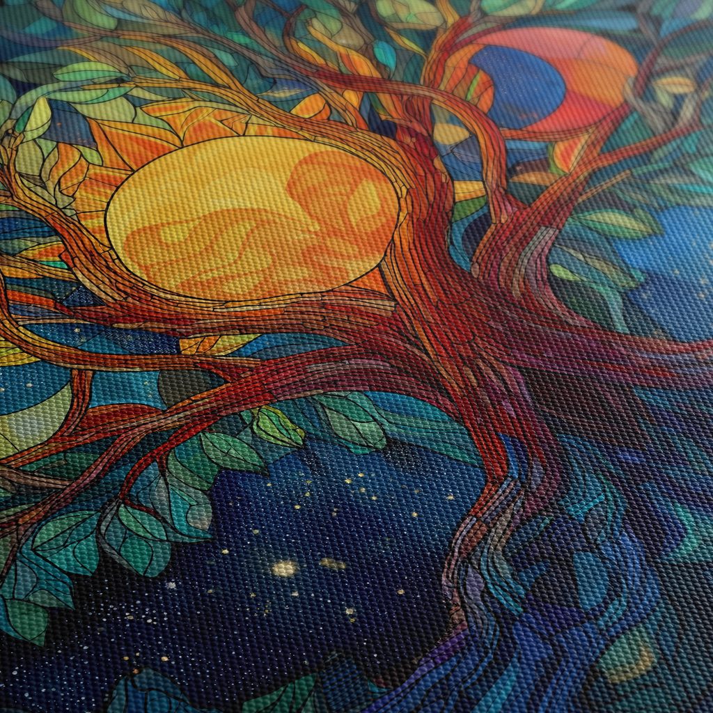Obraz strom života v barevné vitráži