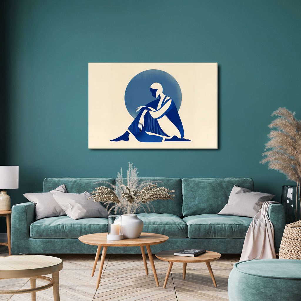 Obraz žena v modrém klidu zobrazuje elegantní siluetu ženy v zamyšlené pozici. Hlavní prvky zahrnují jemné linie a harmonické tvary, které evokují pocit klidu a pohody. Dominantní modré tóny v kontrastu s neutrálním pozadím vytvářejí příjemnou atmosféru, která uklidňuje mysl. Tento obraz je ideální pro moderní interiéry, kde přidá šmrnc a sofistikovanost. Vysoce kvalitní tisk zajišťuje živé barvy a dlouhou životnost produktu.