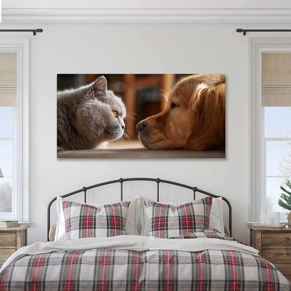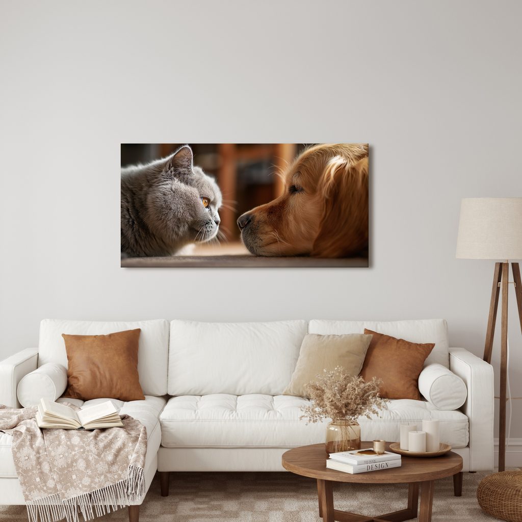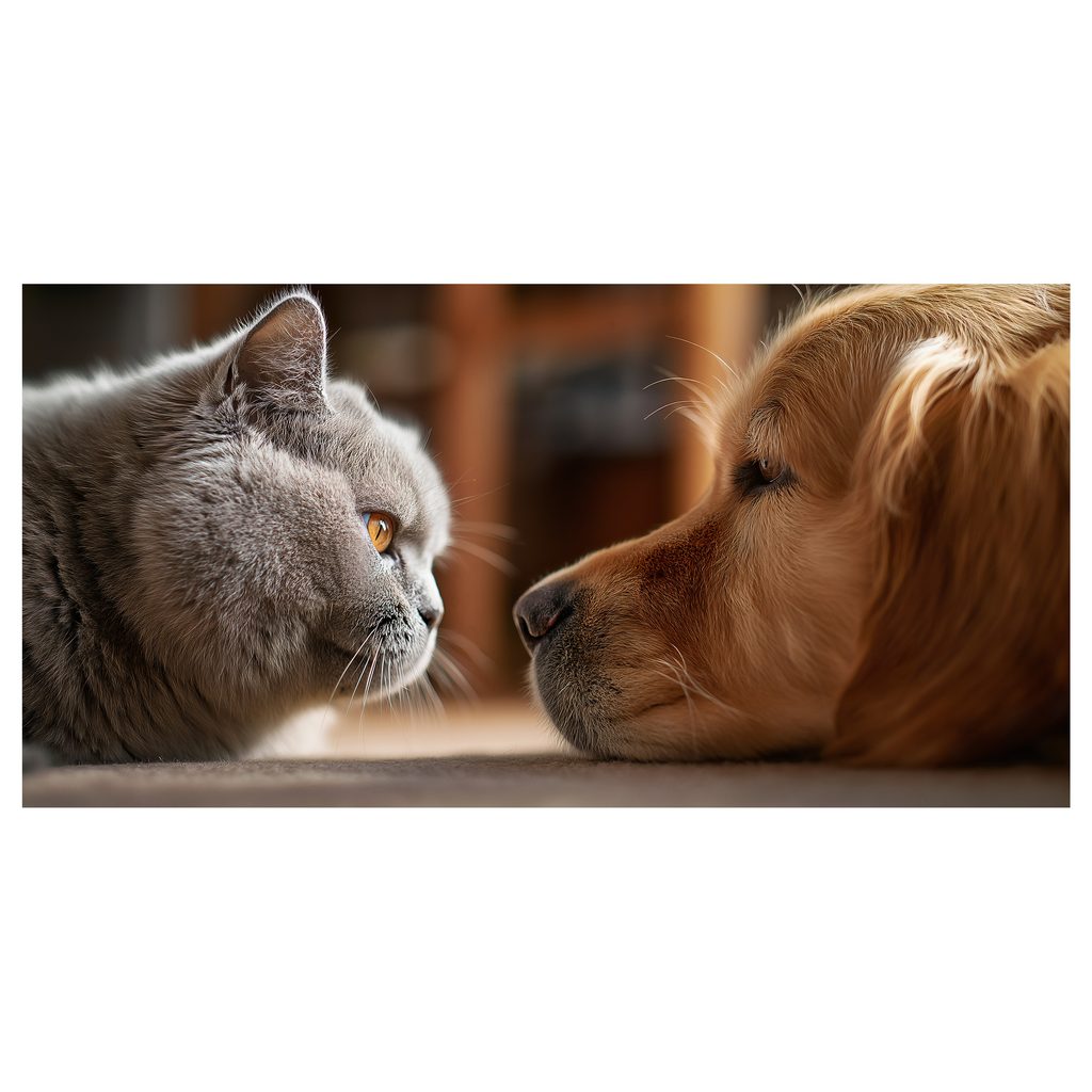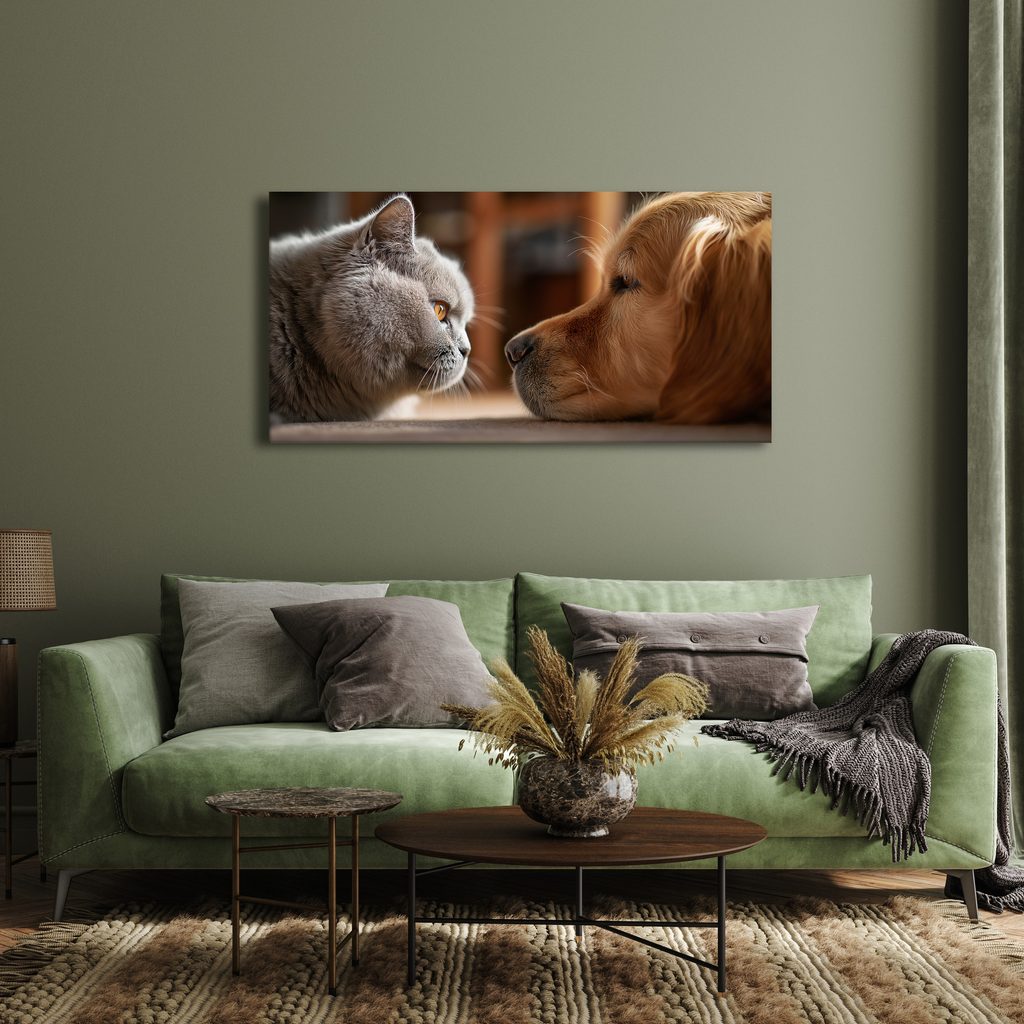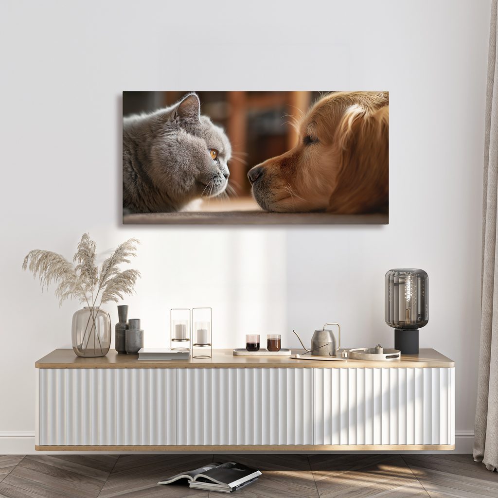 Obraz klidné setkání kočky a psa