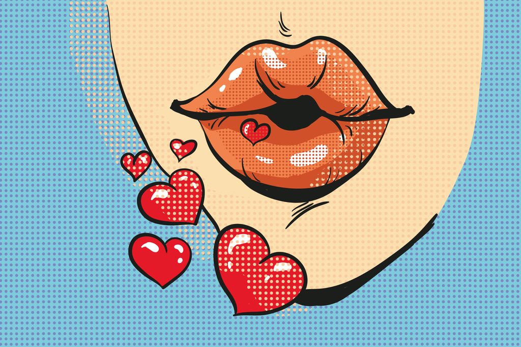 Tapeta s motivem sladkého pop art polibku přináší do vašeho interiéru hravou atmosféru. Hlavním prvkem je výrazná ilustrace rtů obklopená srdíčky, což evokuje romantiku a vášeň. Barvy v kombinaci modré, červené a béžové vytvářejí veselou a moderní náladu. Ideální pro oživení ložnice, obývacího pokoje nebo kreativního prostoru. Kvalita tapety zajišťuje snadnou aplikaci a dlouhou životnost, což z ní činí skvělou volbu pro váš domov.