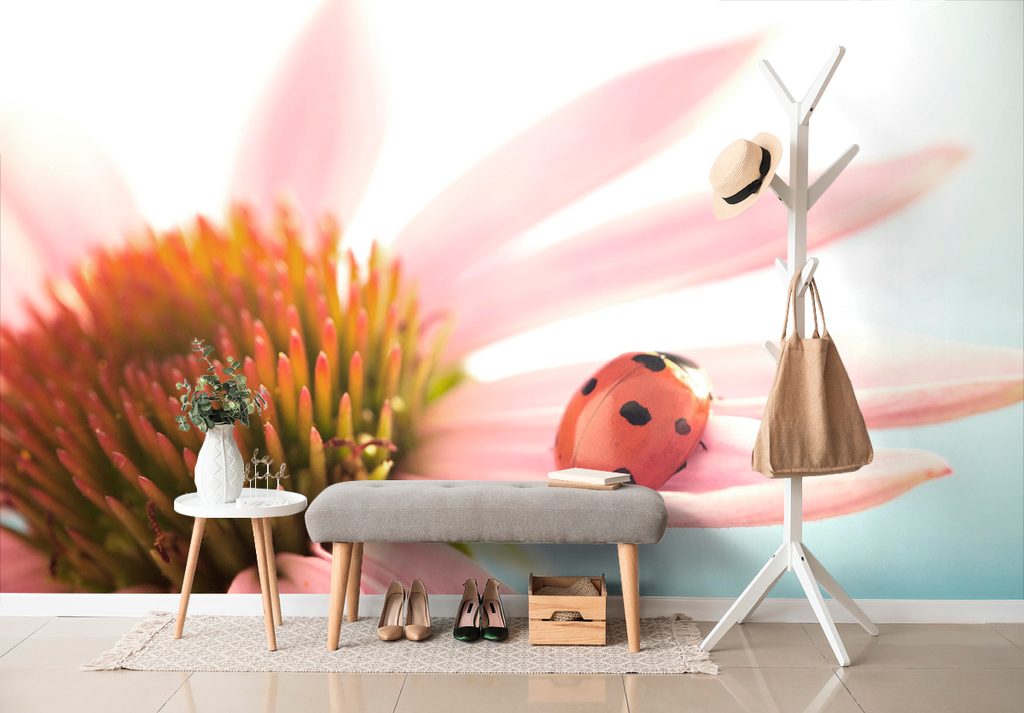 Samolepící fototapeta s motivem berušky na echinacei přináší do vašeho interiéru přírodní kouzlo. Detailní zobrazení červené berušky s černými tečkami na jemně růžovém květu vytváří harmonický a živý kontrast. Světlé, pastelové barvy dodávají místnosti svěžest a pozitivní atmosféru. Tato tapeta je ideální pro dětské pokoje nebo jako dekorace do obývacích prostor. Produkt je vyroben z kvalitních materiálů, které zajišťují snadnou aplikaci a dlouhou životnost.