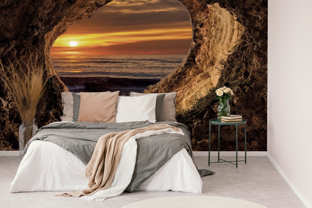 Samolepící fototapeta znázorňuje nádherný východ slunce vycházejícího z jeskyně. V popředí se nachází texturované kamenné stěny, které rámují zlatavé a oranžové tóny slunce nad klidnou hladinou moře. Atmosféra vyzařuje pocit klidu a naděje, ideální pro vytvoření útulného prostředí. Tato tapeta se skvěle hodí do obývacího pokoje nebo ložnice, kde přidá na eleganci a útulnosti. Produkt je vyroben z kvalitního materiálu, který zaručuje snadnou aplikaci a dlouhou životnost.