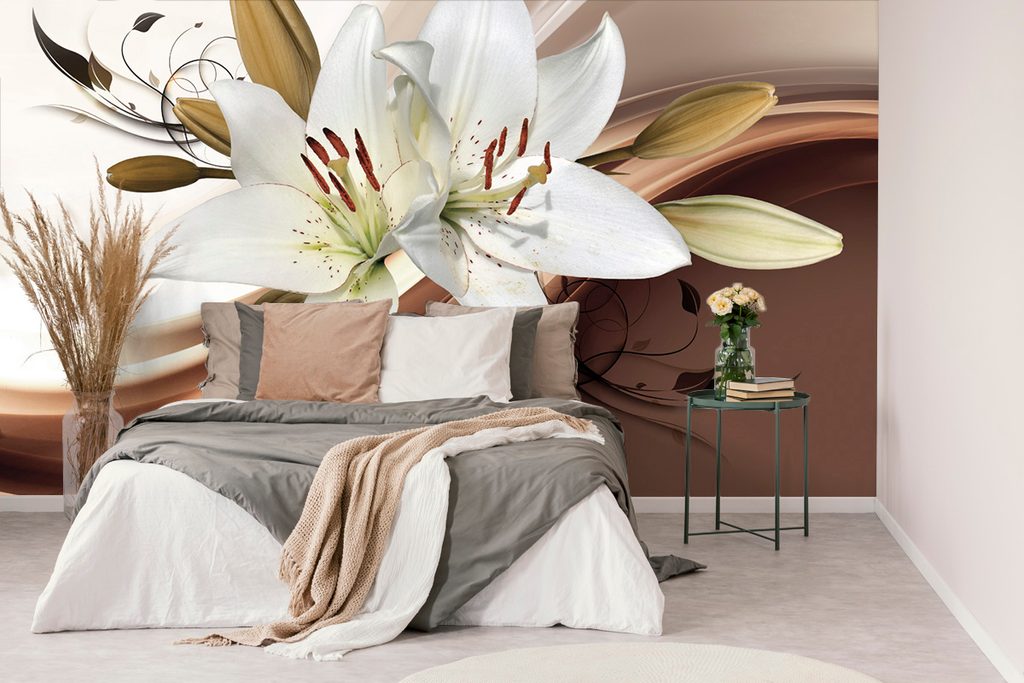 Samolepící tapeta s motivem decentních lilií na abstraktním pozadí přináší do vašeho interiéru nádech elegance. Bílé lilie s jemnými detaily kontrastují s hladkým, teplým pozadím v odstínech béžové a hnědé, což vytváří harmonickou atmosféru. Celkový vzhled je moderní a sofistikovaný, ideální pro zútulnění jakéhokoli prostoru. Tato tapeta je skvělou volbou pro obývací pokoje, ložnice nebo pracovny. Kvalitní materiál zaručuje snadnou aplikaci a dlouhou životnost, čímž se stává praktickým řešením pro vaše bydlení.