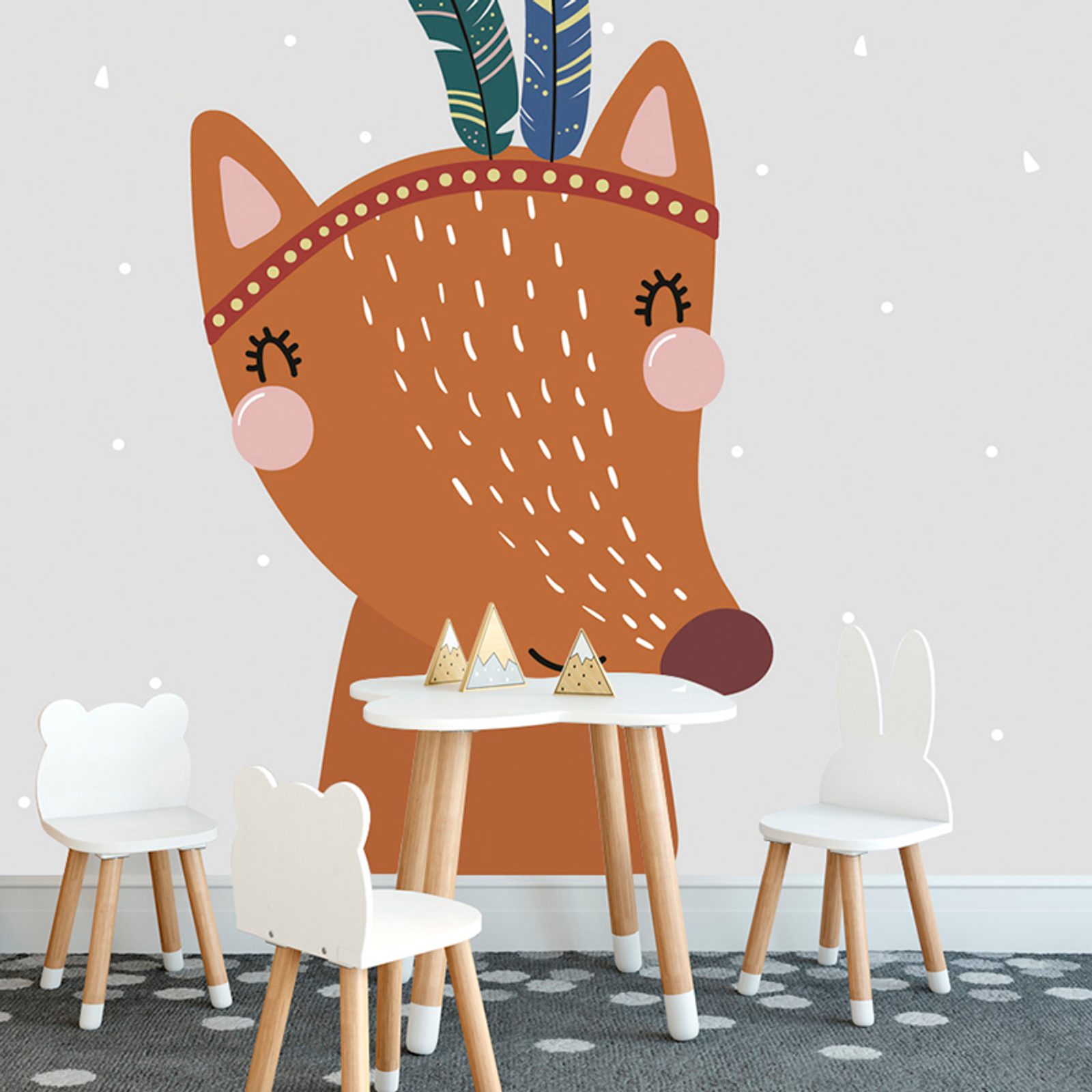 Roztomilá liška s peříčky přináší do vašeho interiéru hravou atmosféru. Motiv je zdobený barevnými peříčky a jemnými detaily, které dodávají tapetě osobitý šarm. Hlavní barvy jsou teplé odstíny oranžové a jemné pastelové tóny, které vytvářejí radostnou náladu. Tato tapeta je ideální pro dětské pokoje nebo hrací koutky, kde potěší malé i velké. Samolepící provedení zajišťuje snadnou aplikaci a možnost opětovného přelepení.
