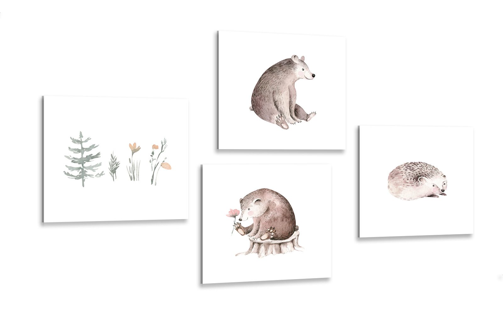 Set obrazů lesní zvířátka v minimalistickém stylu přináší kouzlo přírody přímo do vašeho domova. Motivy zahrnují roztomilé medvědy, ježky a přírodní prvky, které zaujmou každého milovníka zvířat. Jemné pastelové barvy vytvářejí klidnou a příjemnou atmosféru, ideální pro relaxaci. Tyto obrazy se skvěle hodí do dětských pokojů nebo do útulných interiérů. Kvalitní tisk zaručuje dlouhou životnost a stálost barev, což z nich činí perfektní dekoraci pro váš domov.